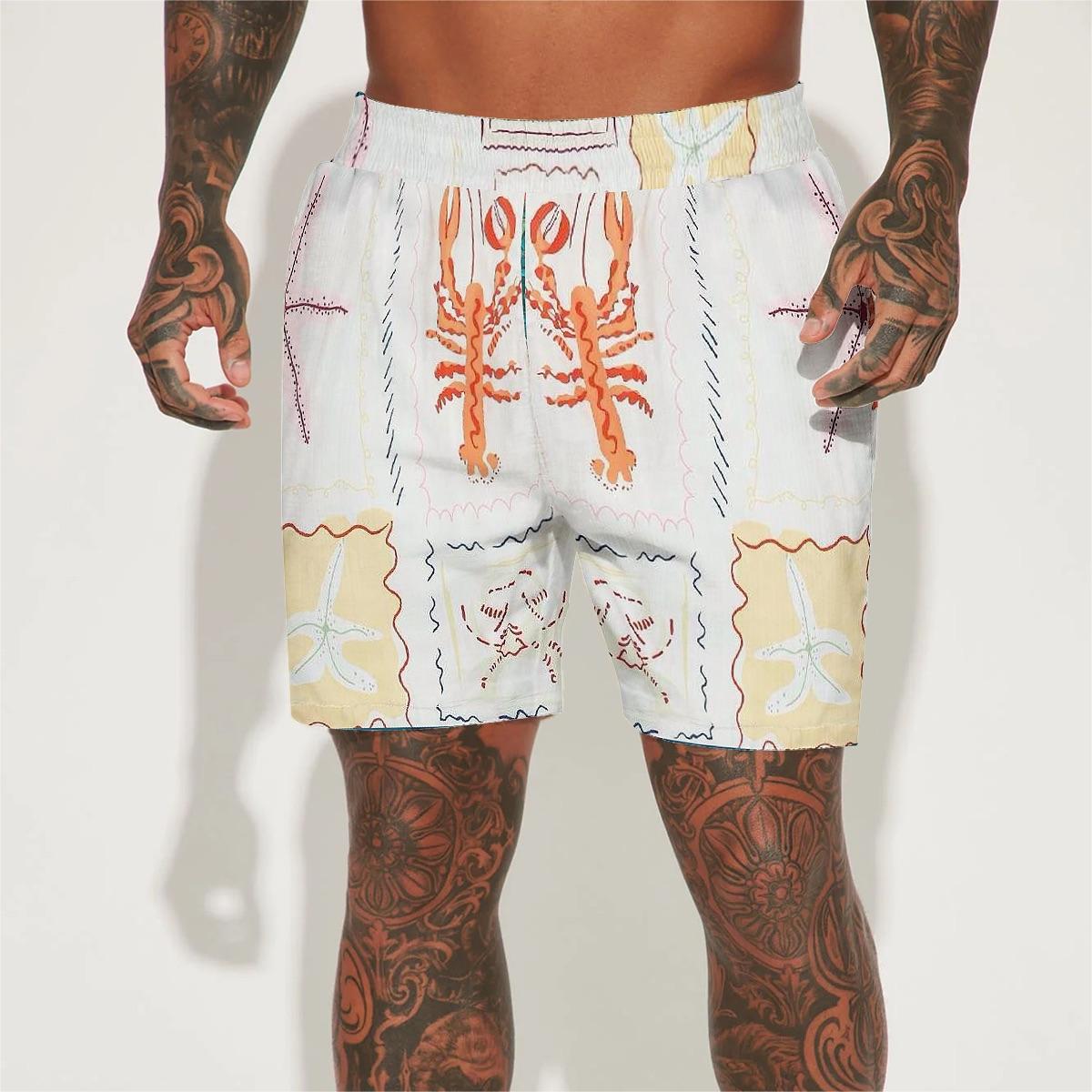 Aloha Style Lobster Pattern Silk Fiber Waistband Shorts