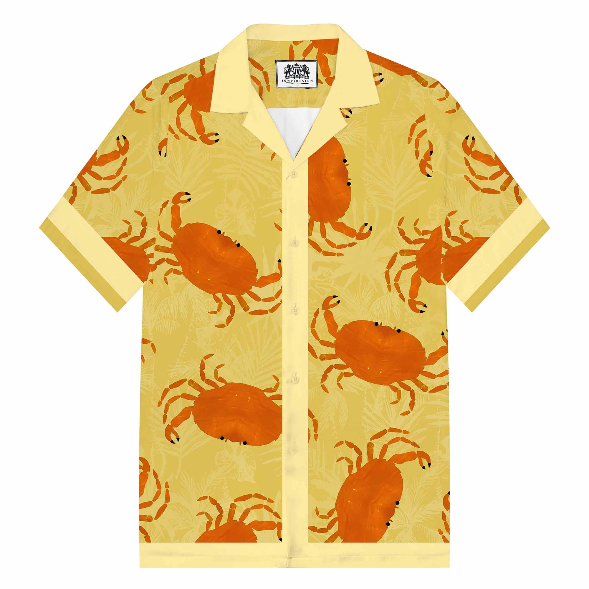 Beach Style Crab Pattern Camp Collar Short Sleeve Shirt