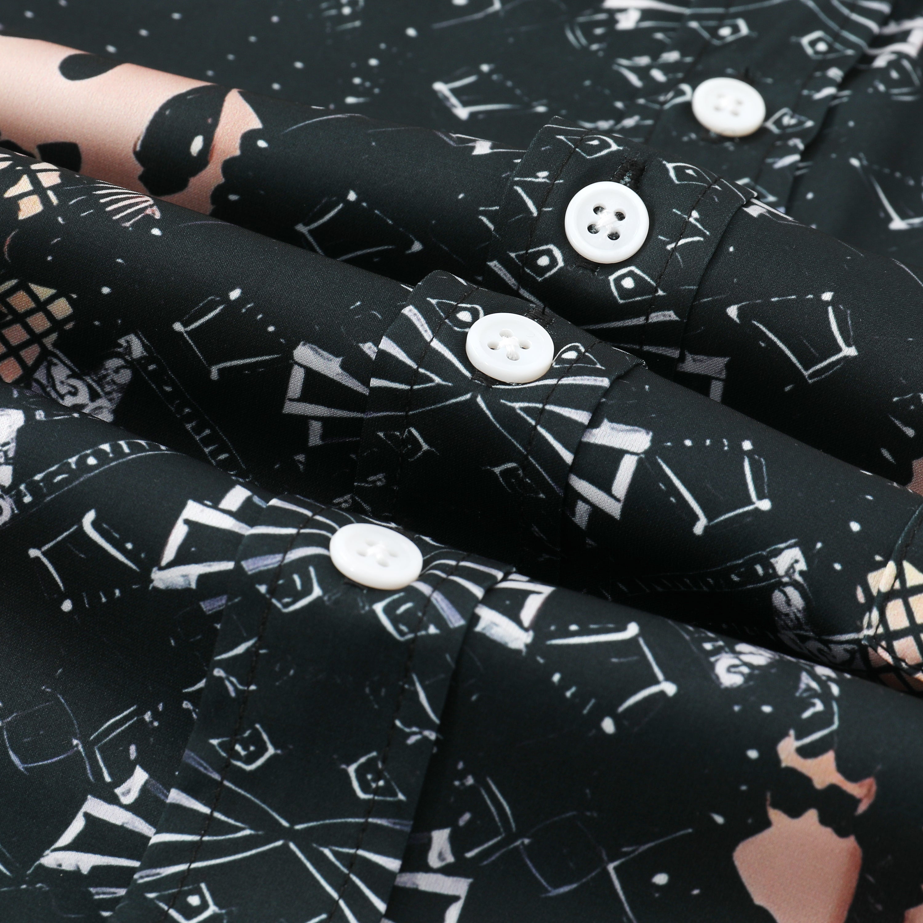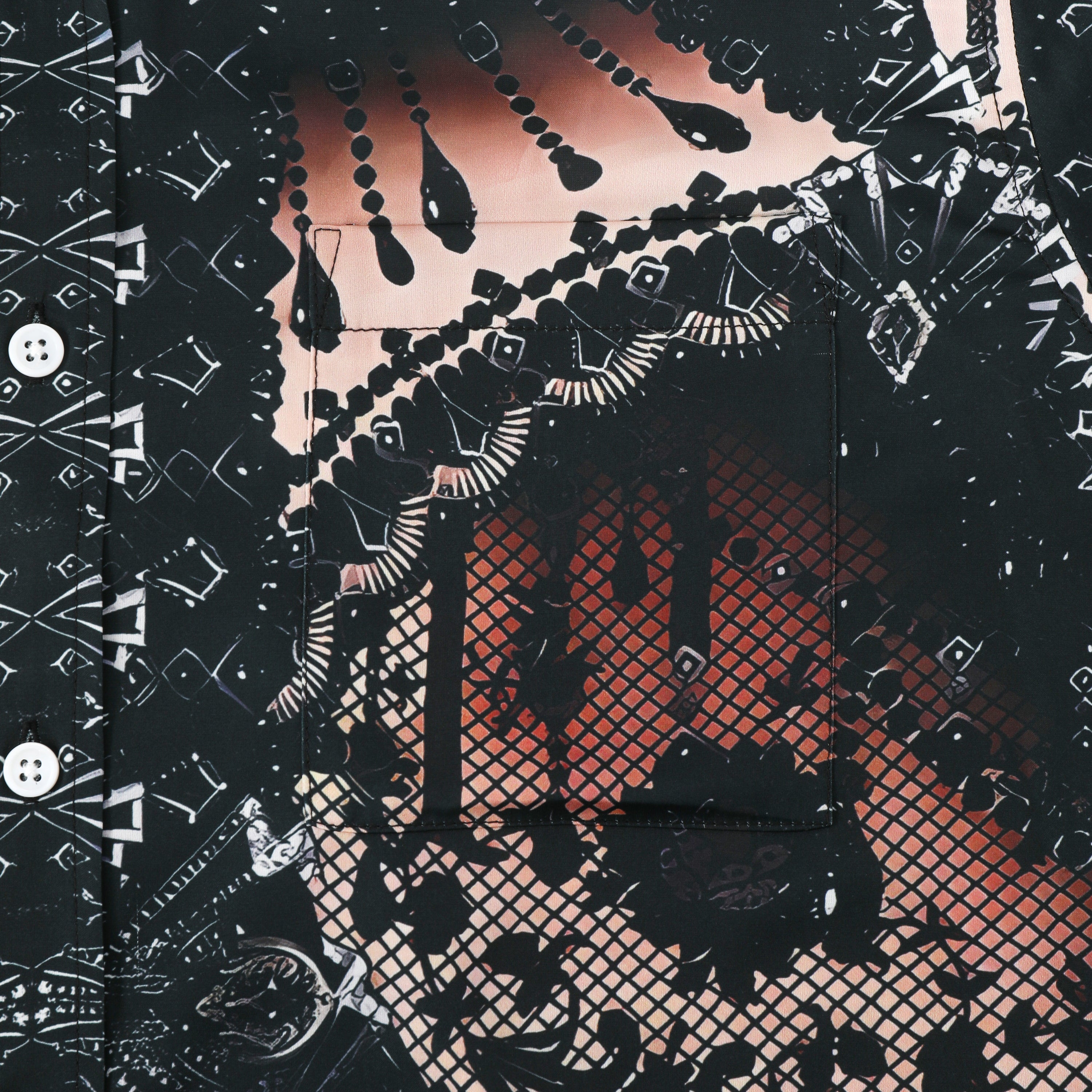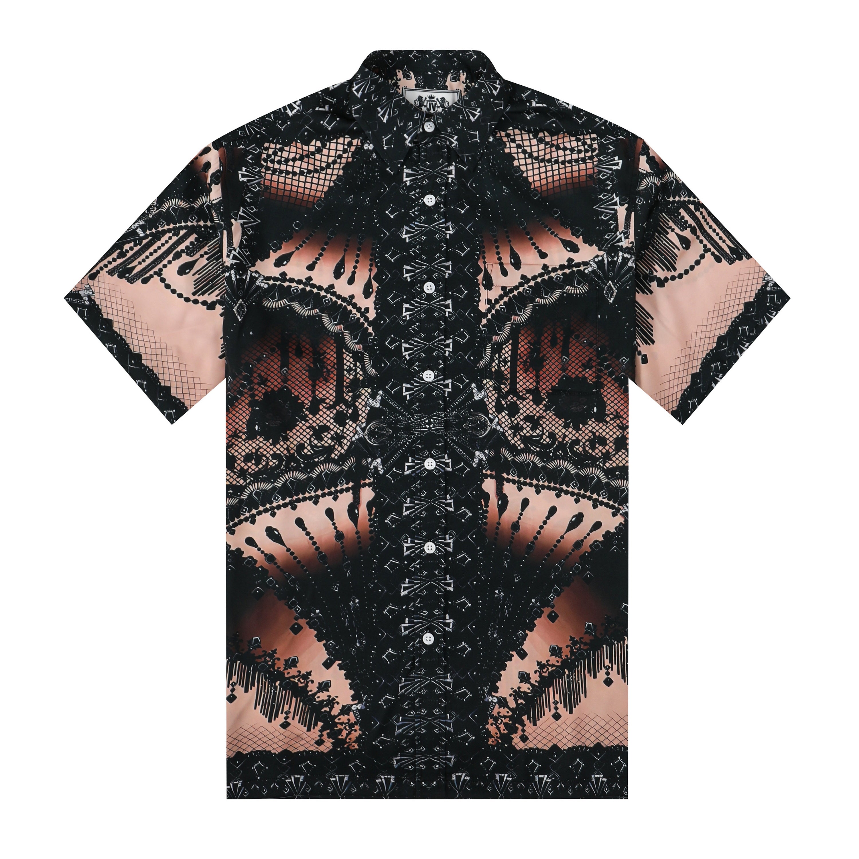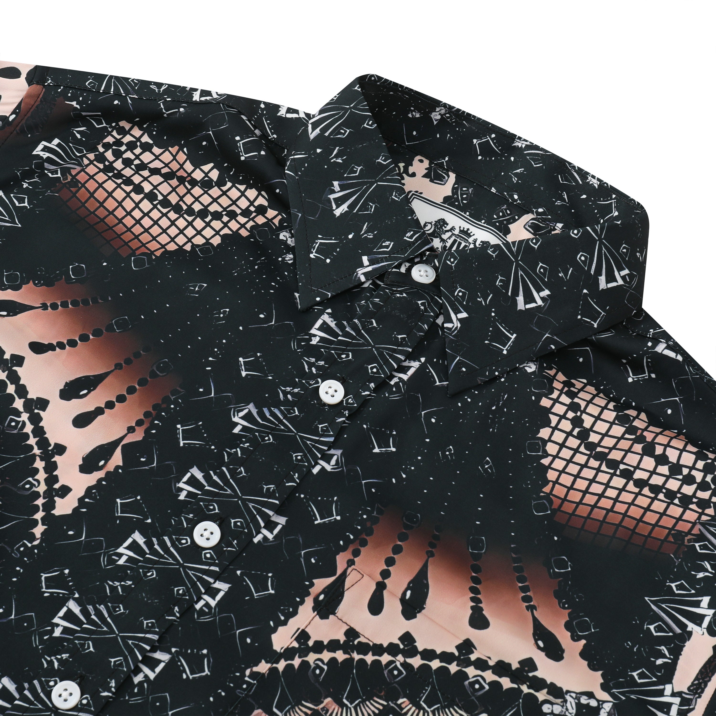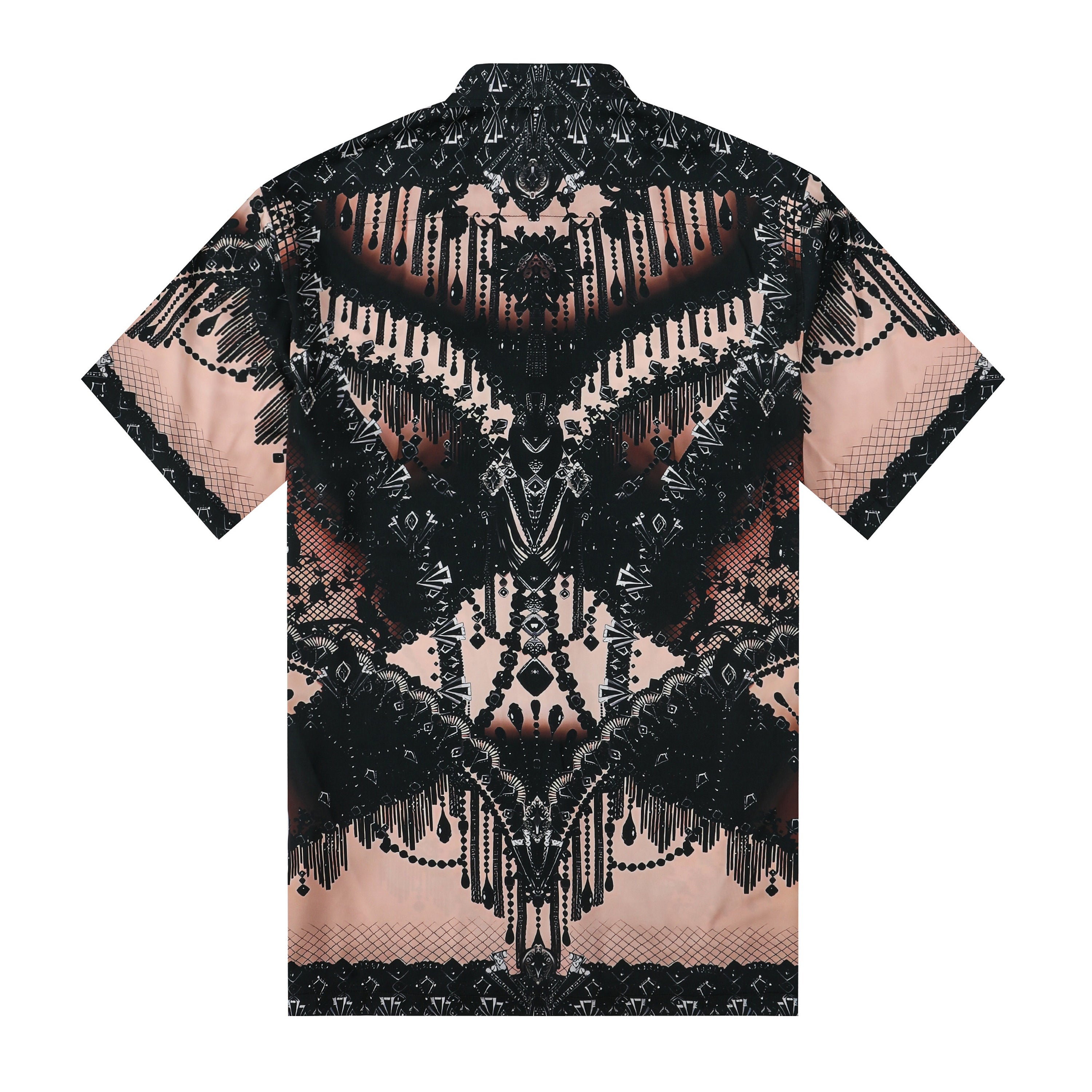 Black Beaded Lace Design Silk Fiber Short Sleeve Shirt