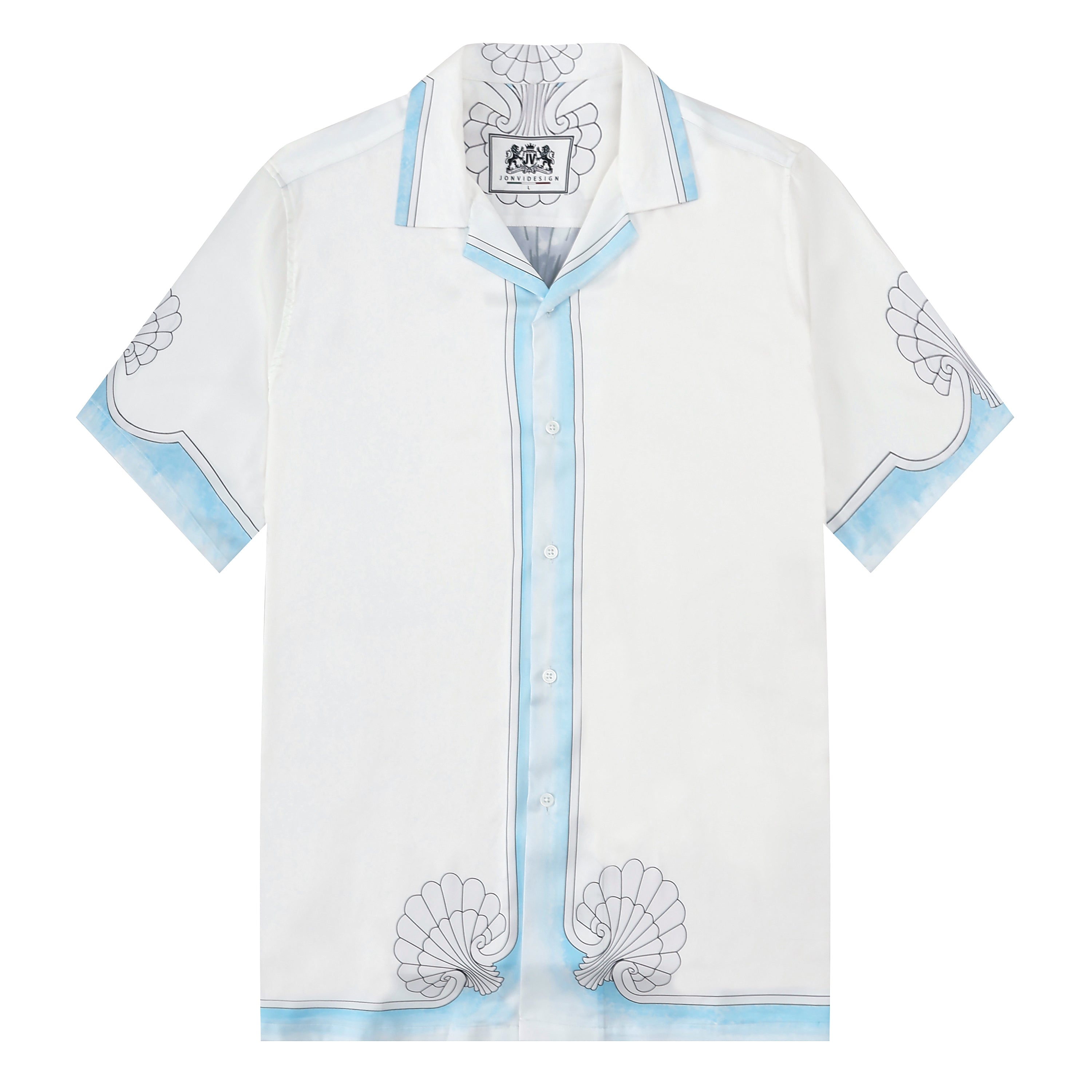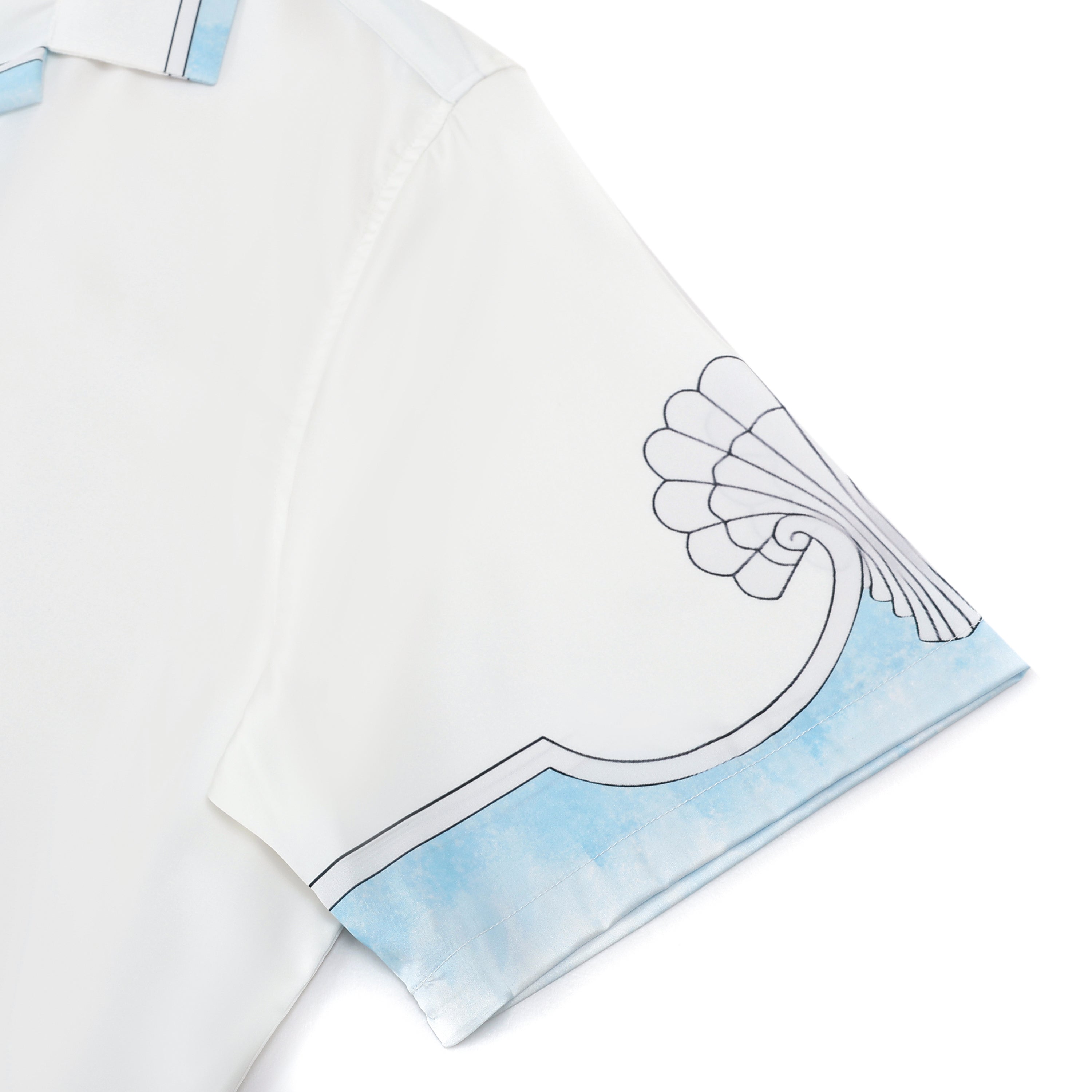 Blue Seahorse Shell Pattern Camp Collar Short Sleeve Shirt