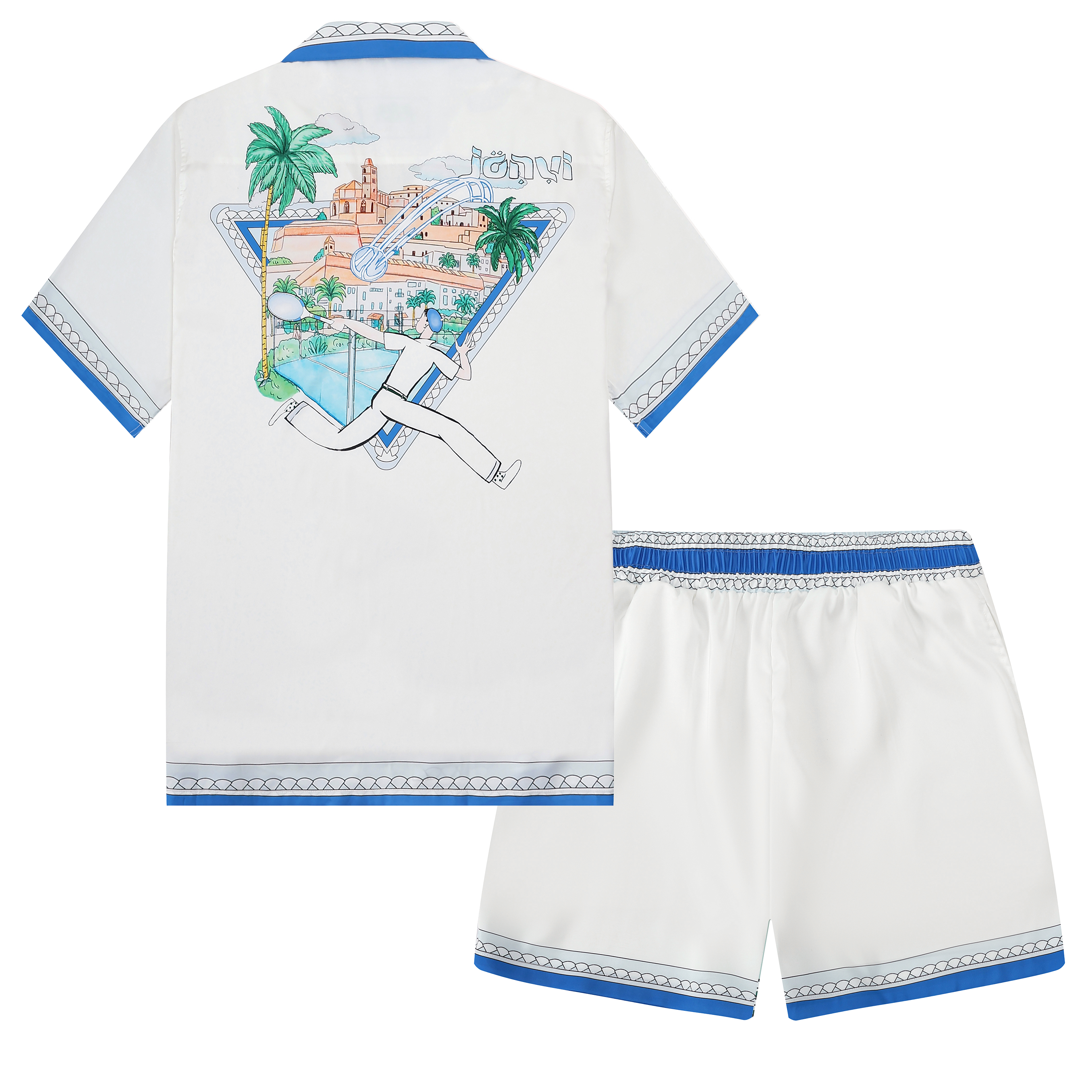 Blue Shell Pattern Silk Elastic Waistband Tennis Shorts