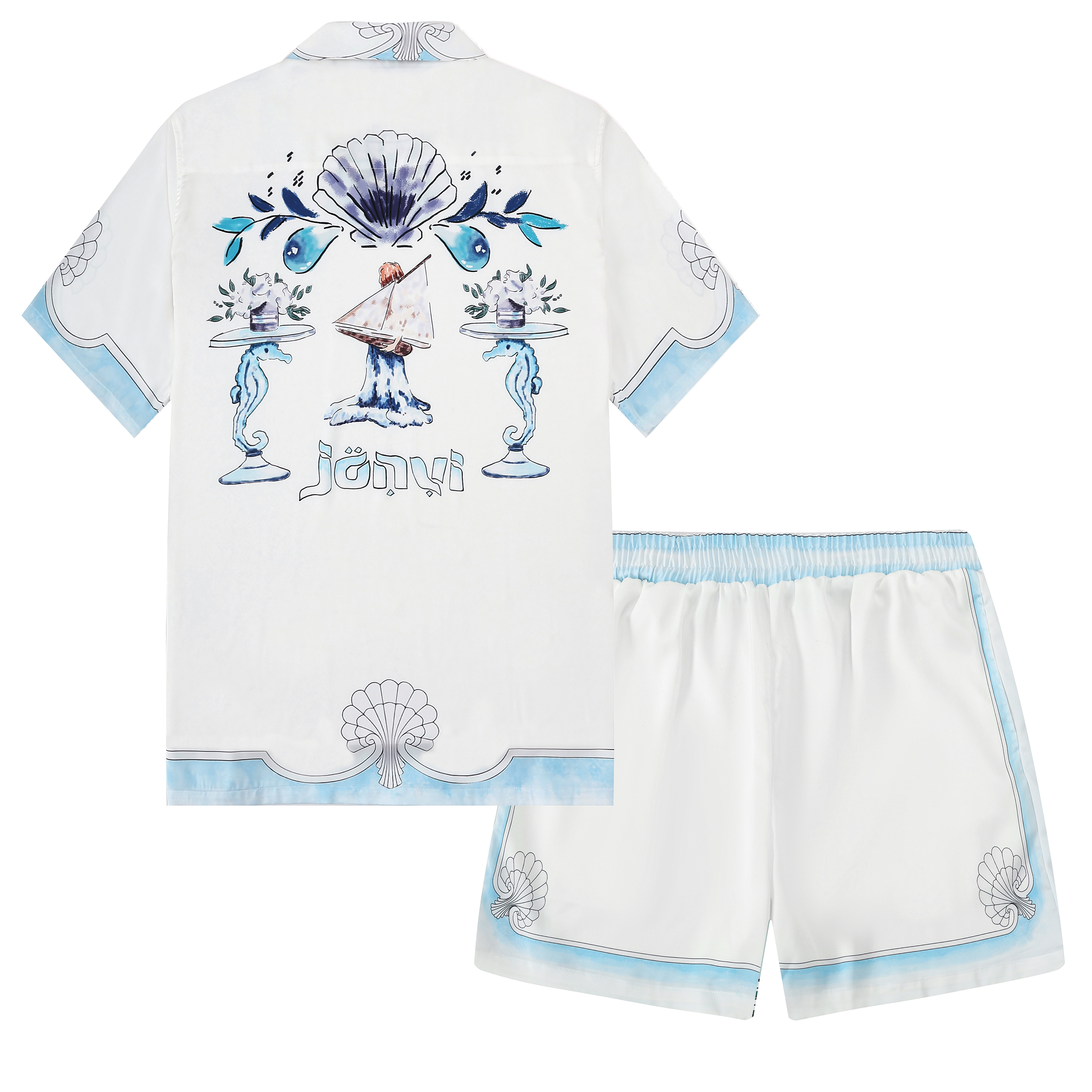 Blue Shell Pattern Silk Fiber Waistband Shorts