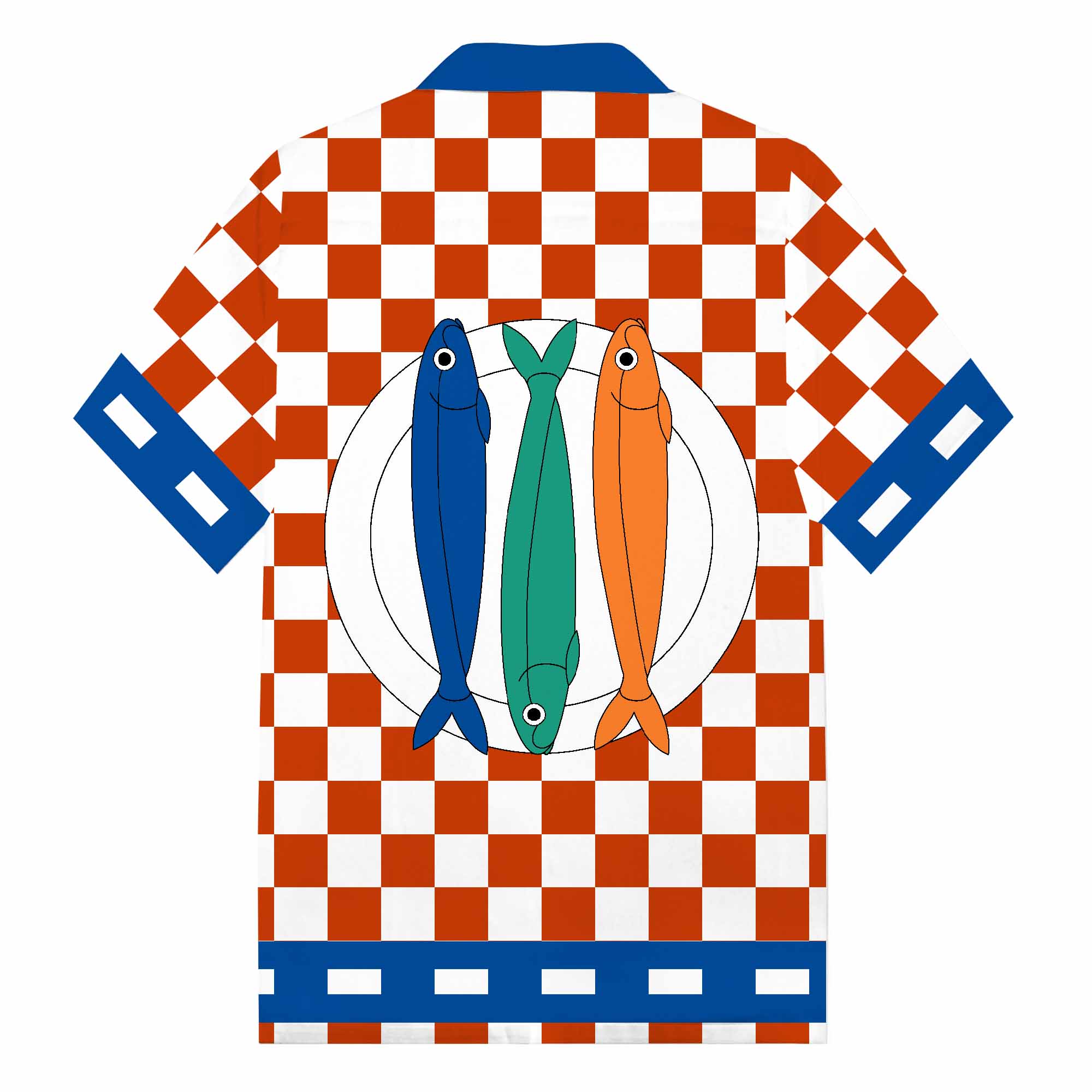 Casual Plaid Plate Fish Print Camp Collar Short Sleeve Shirt