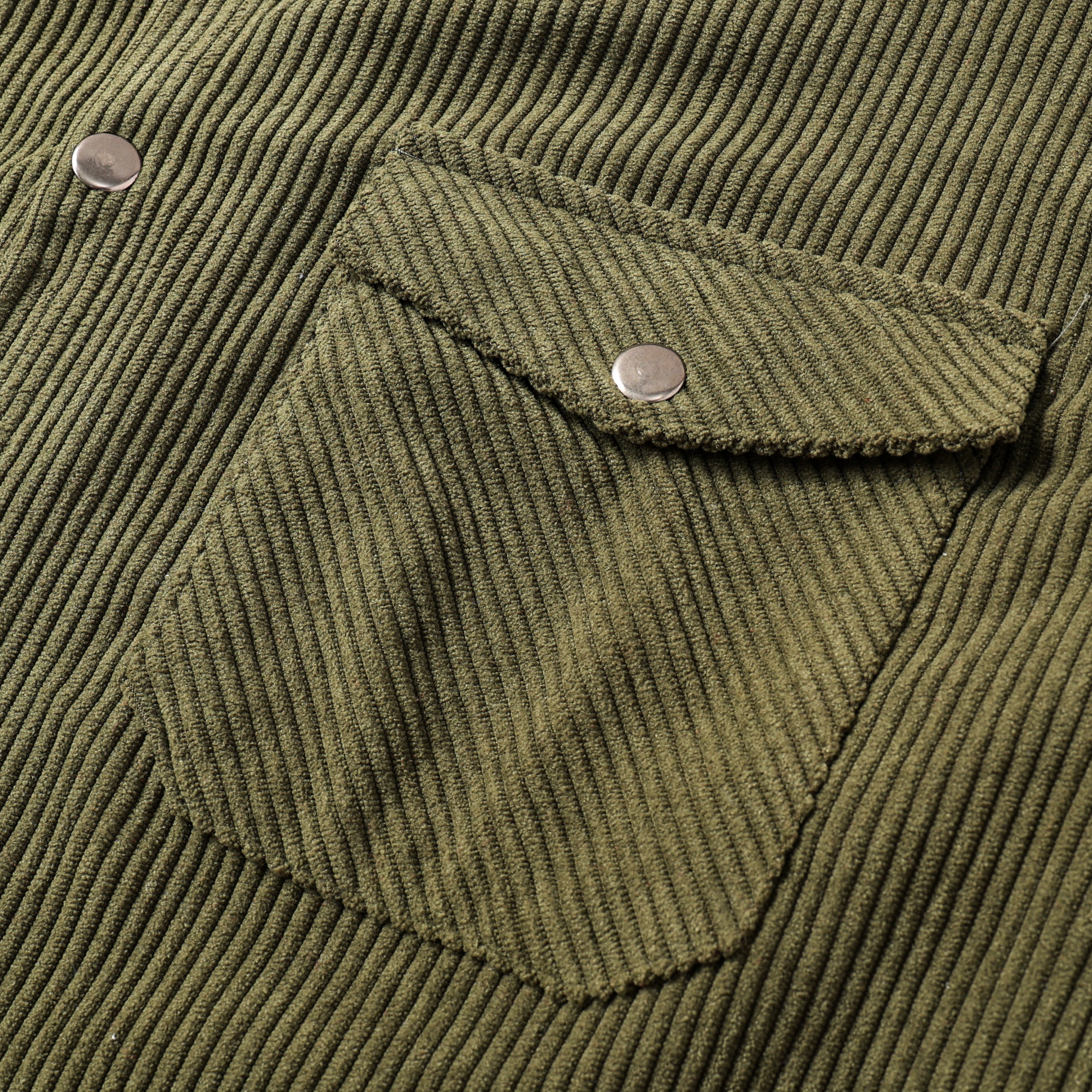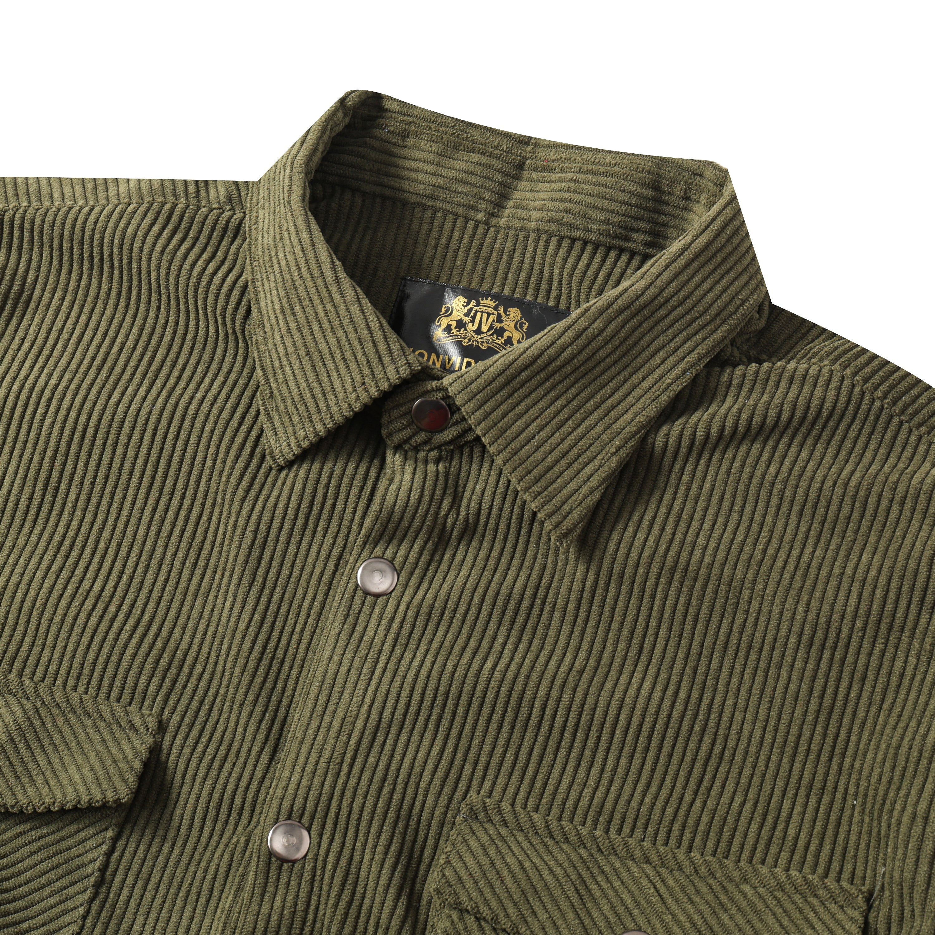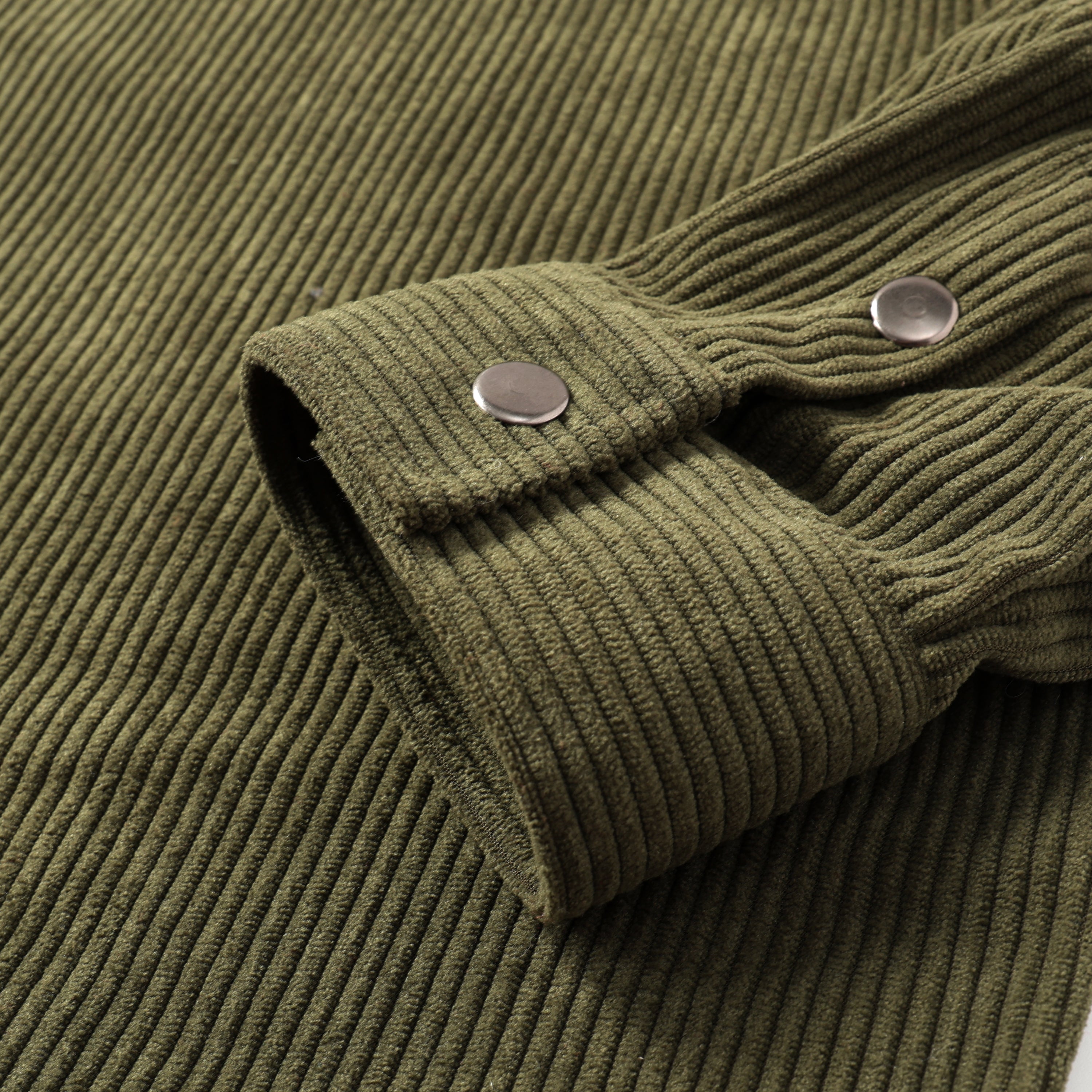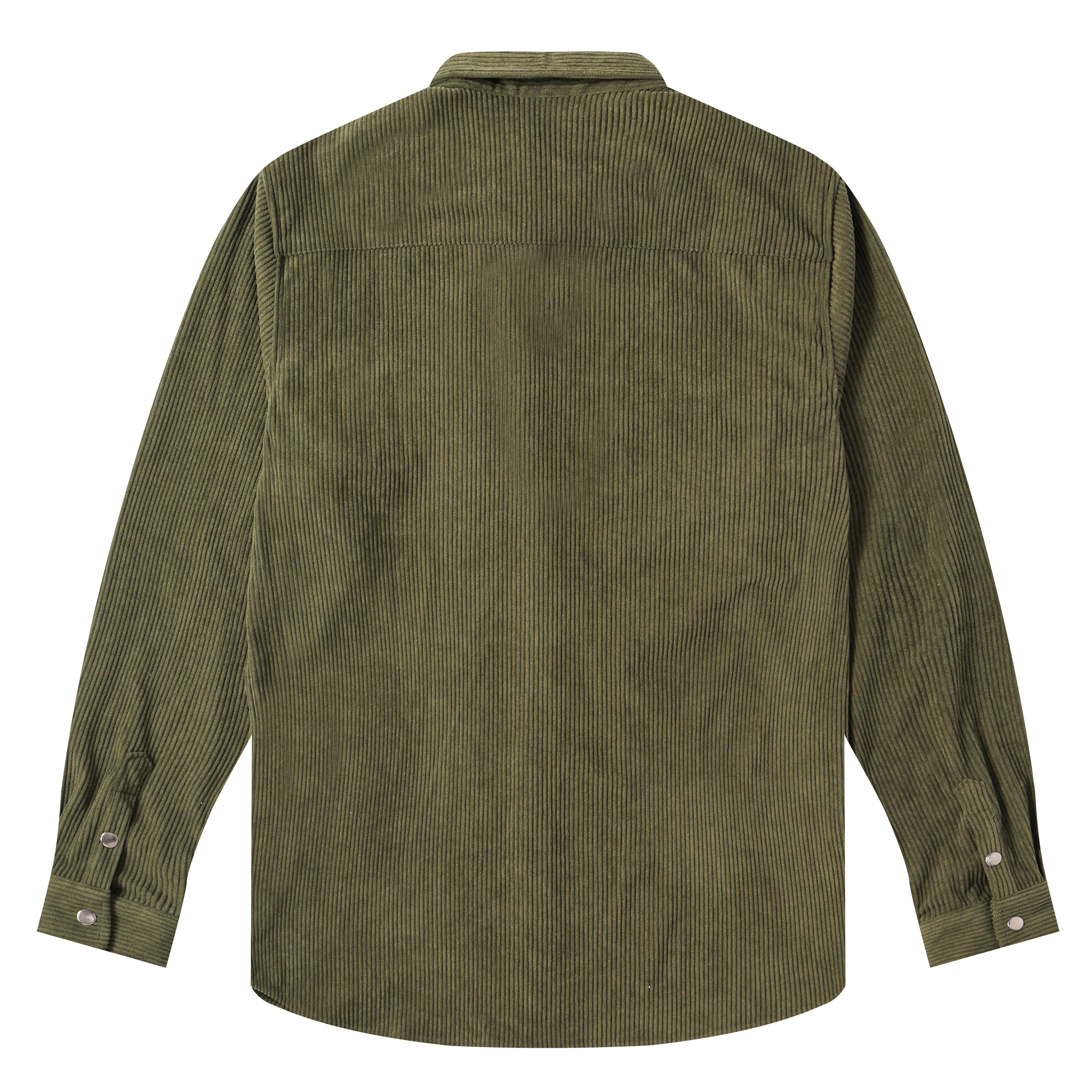 Corduroy Plain Color Snap Closure Long Sleeve Shirt-Olive Green