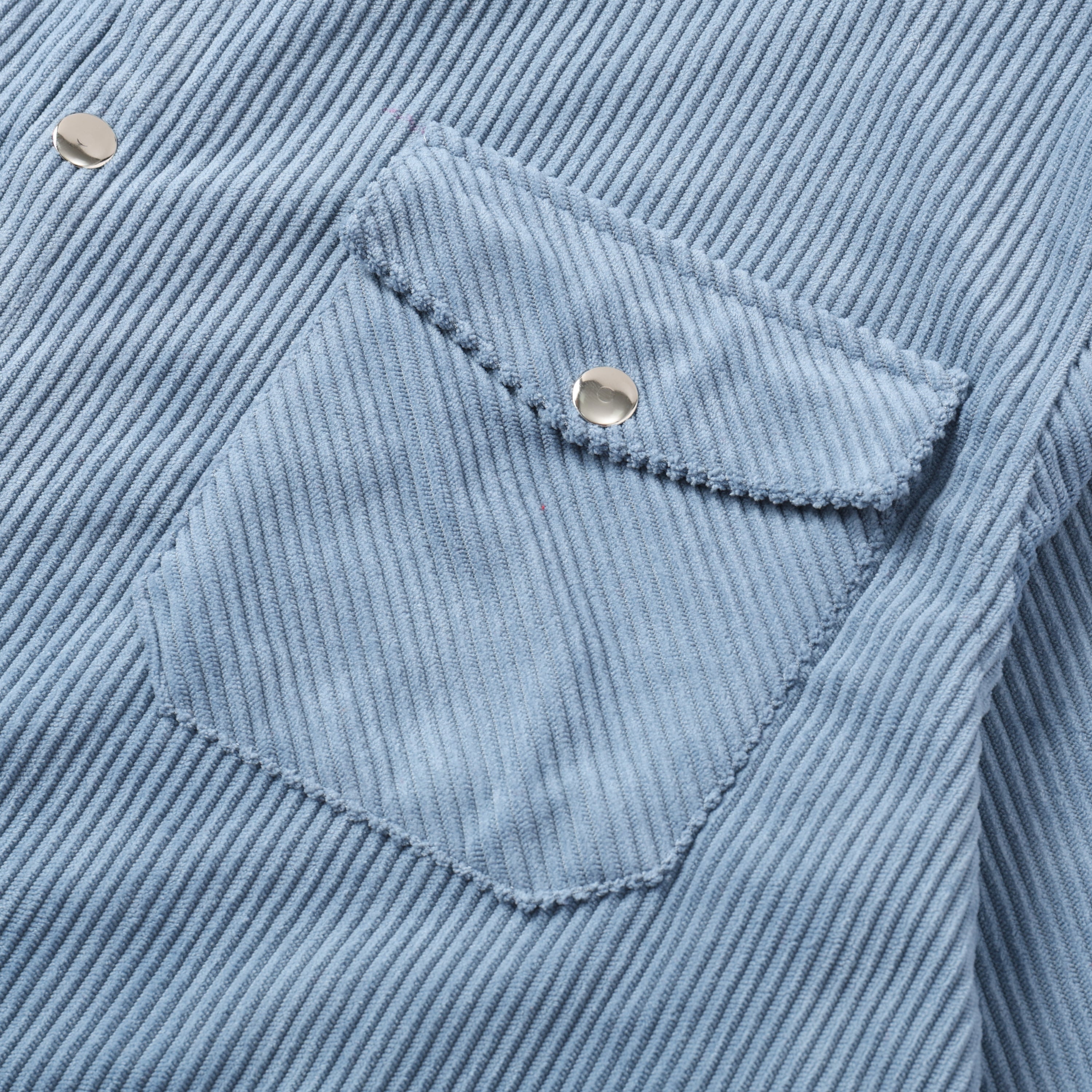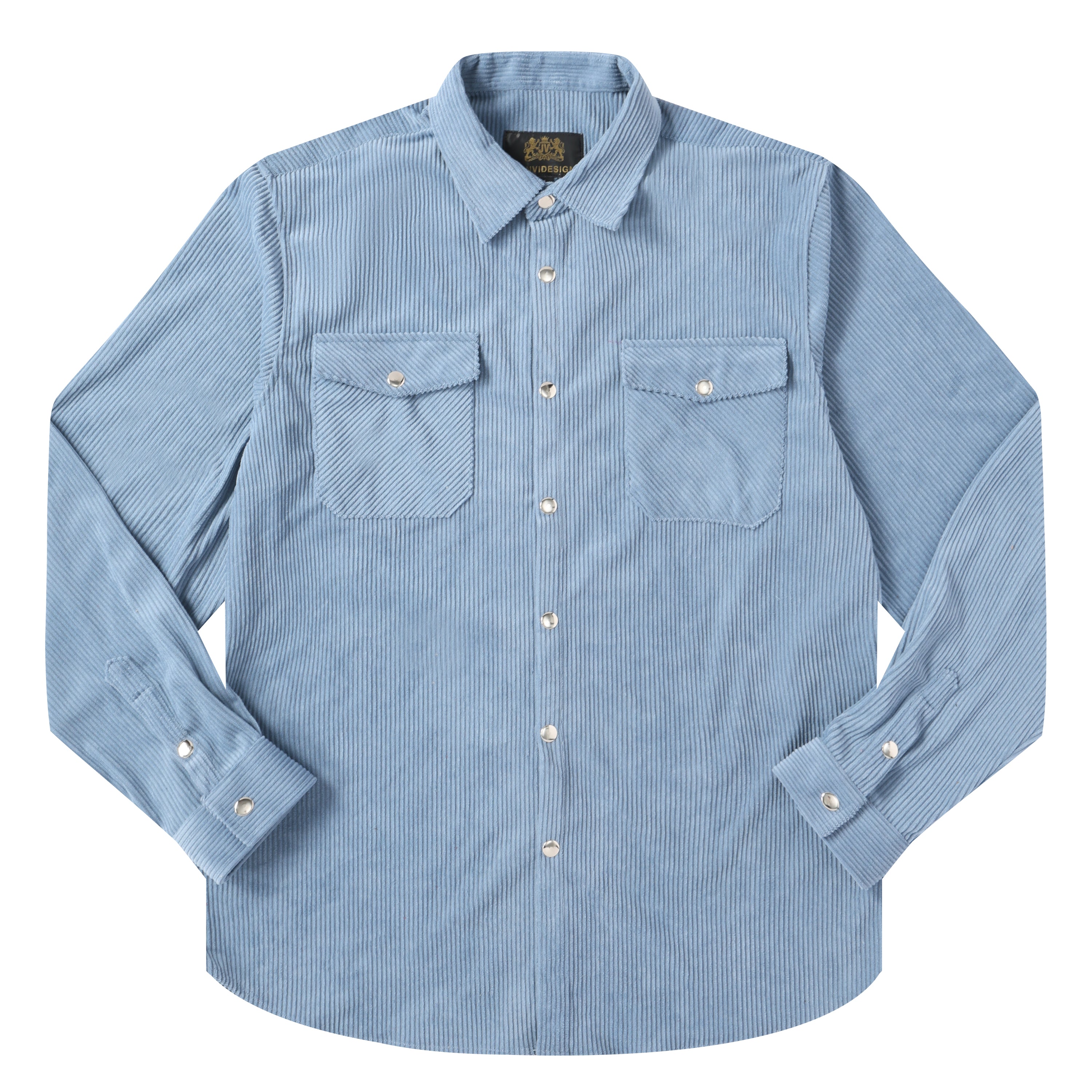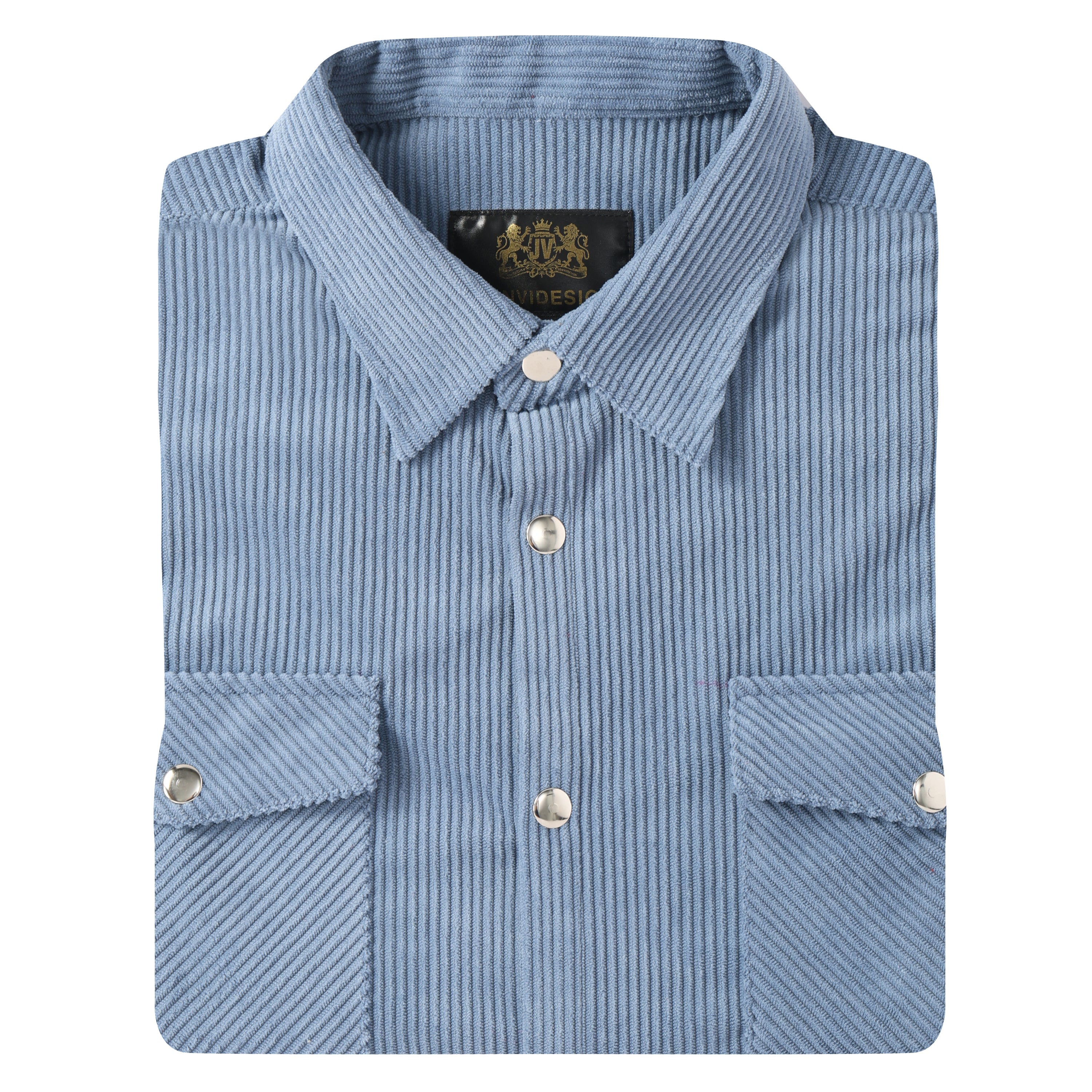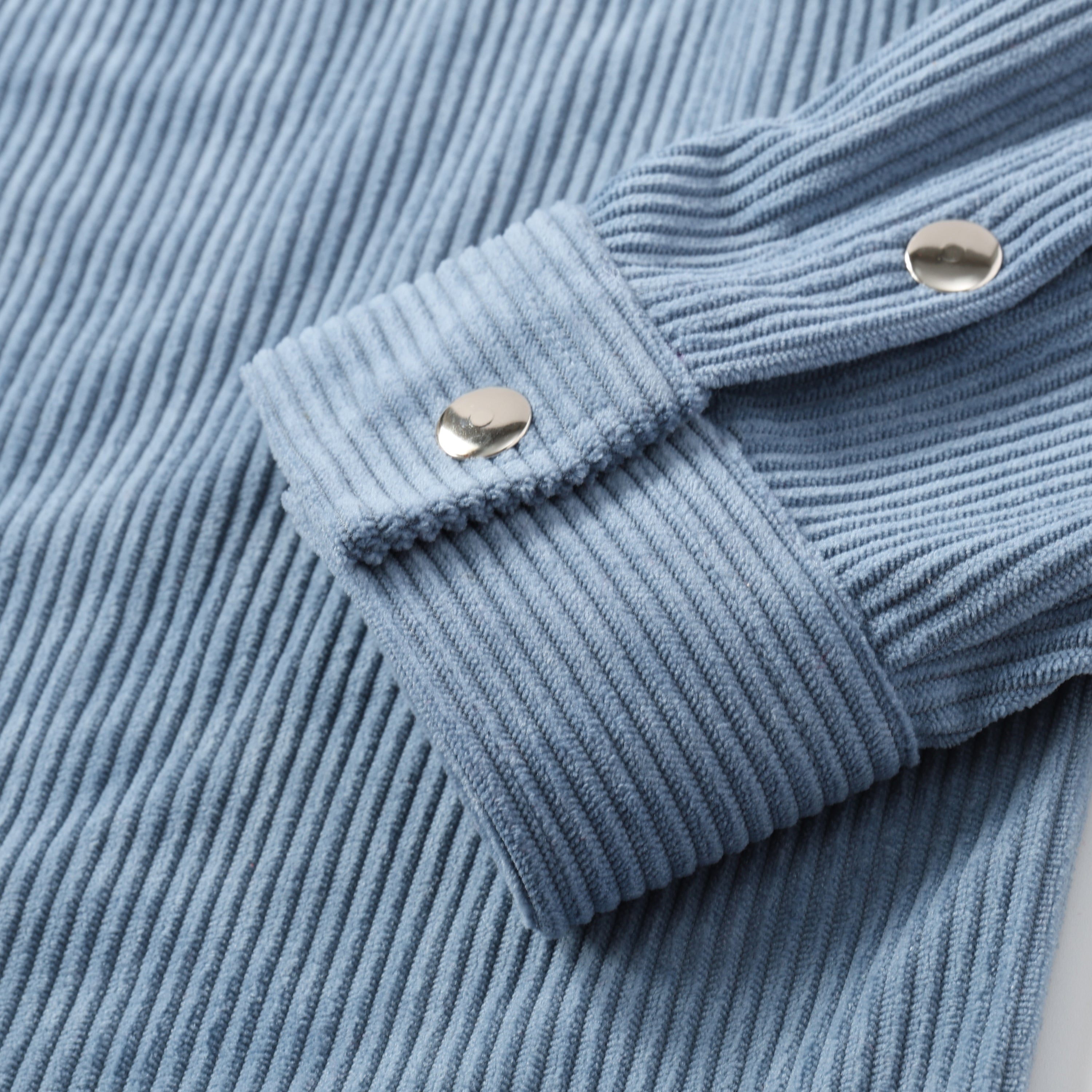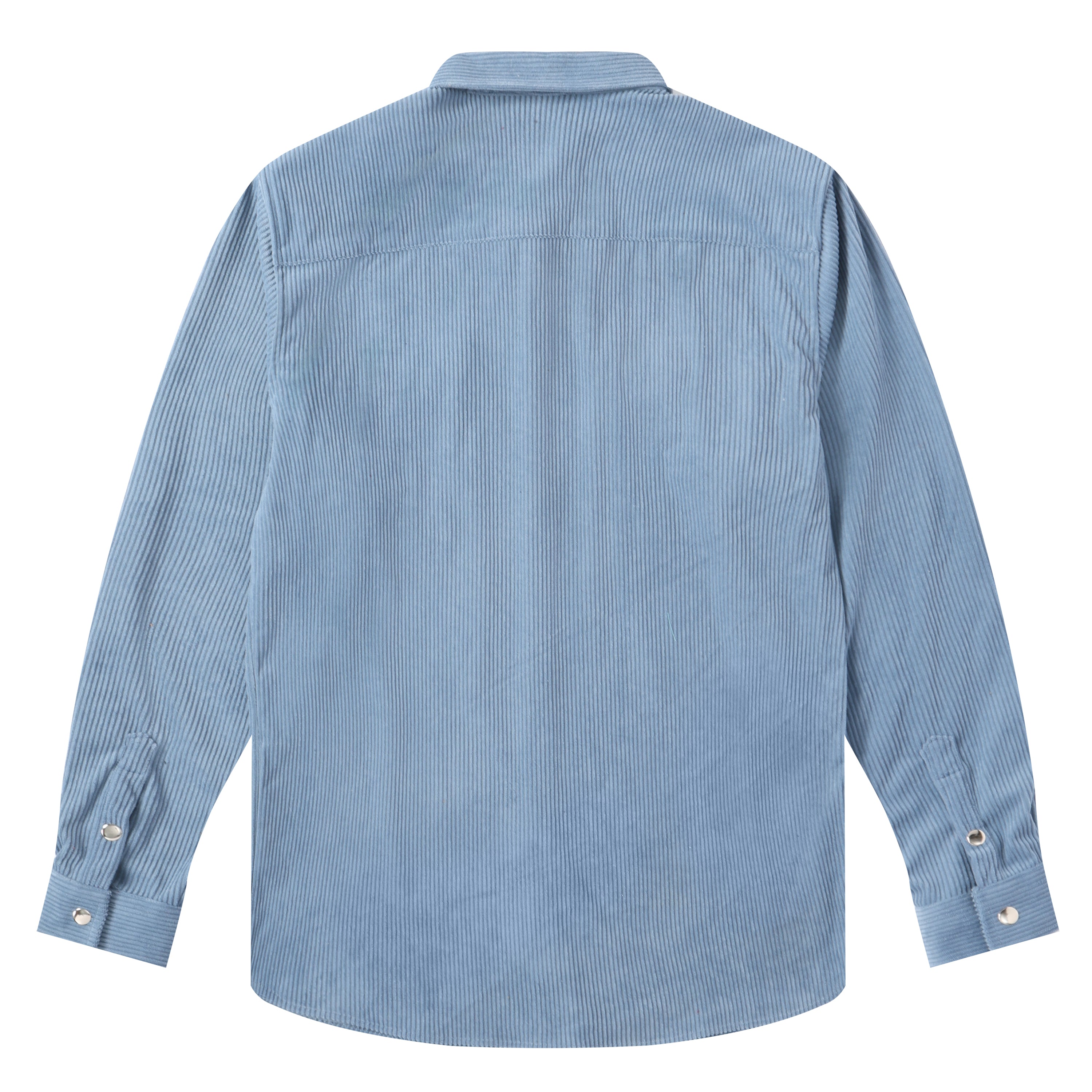 Corduroy Plain Color Snap Closure Long Sleeve Shirt-Serenity Blue