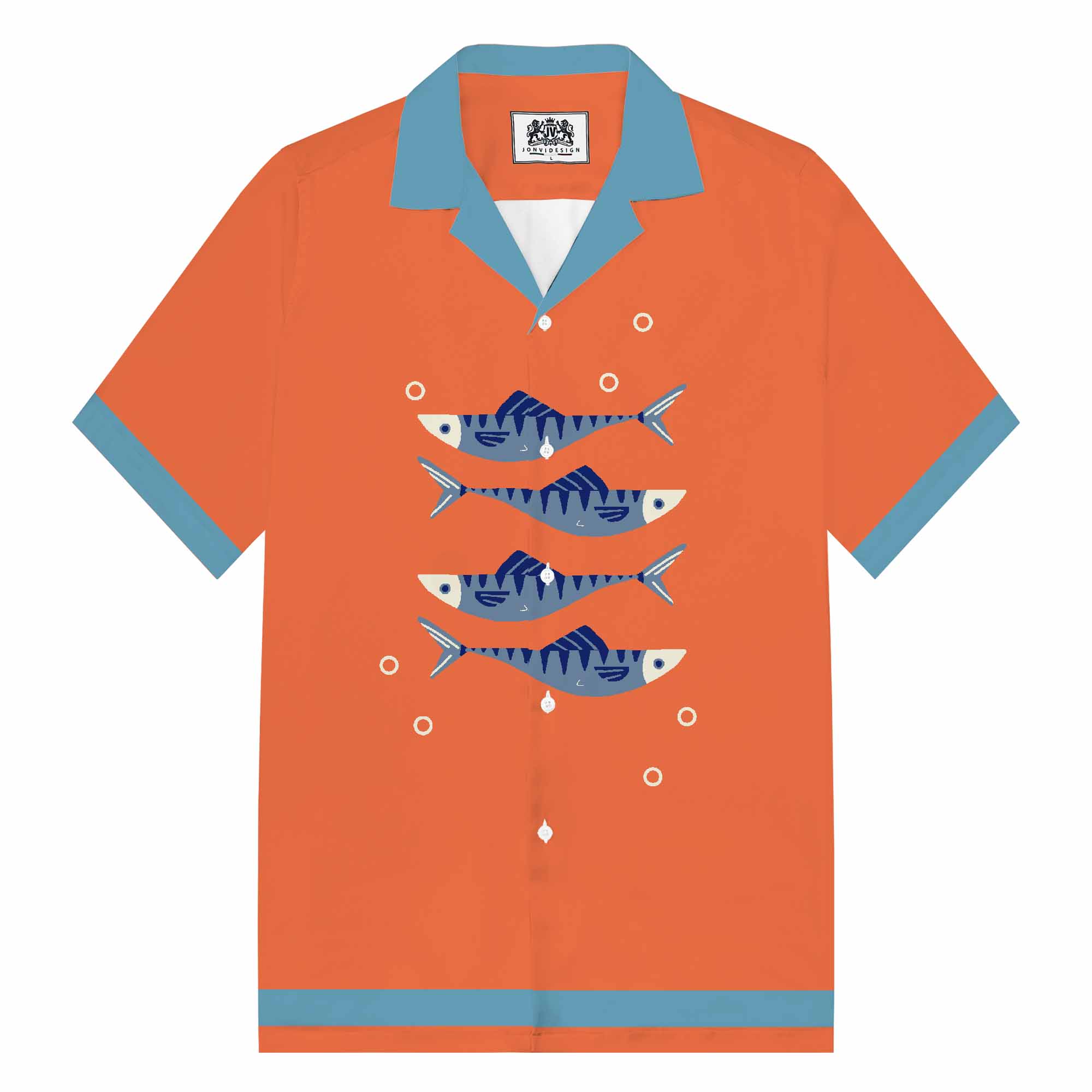 Fish Blowing Bubbles Orange Elastic Waistband Summer Casual Shorts