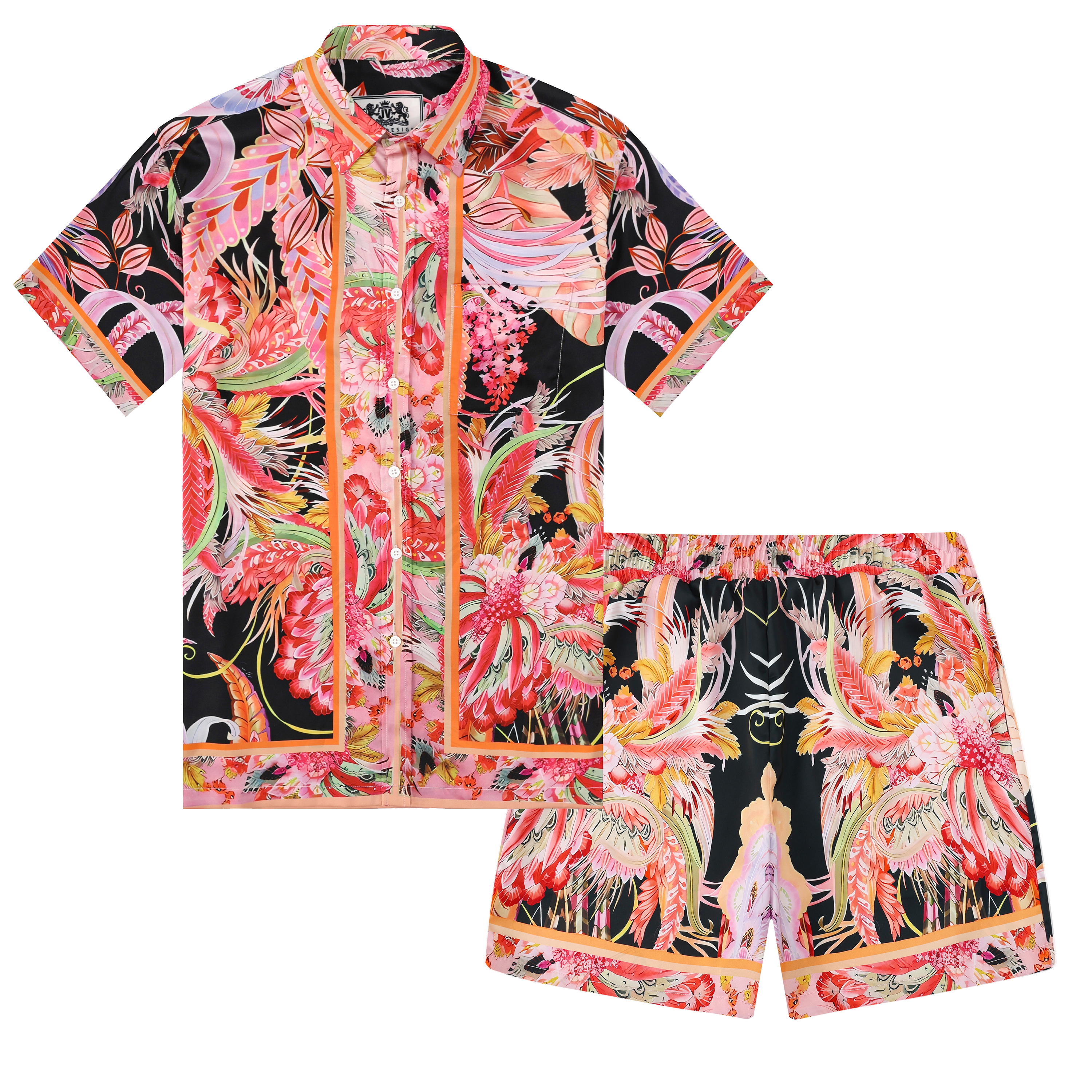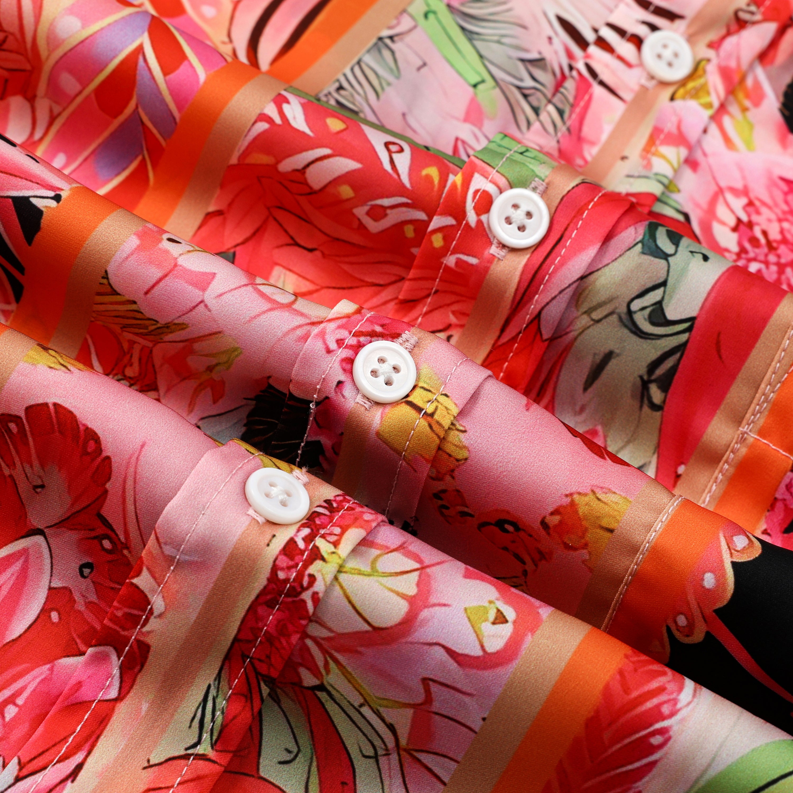 Floral Butterflies Pattern Silk Fiber Short Sleeve Shirt