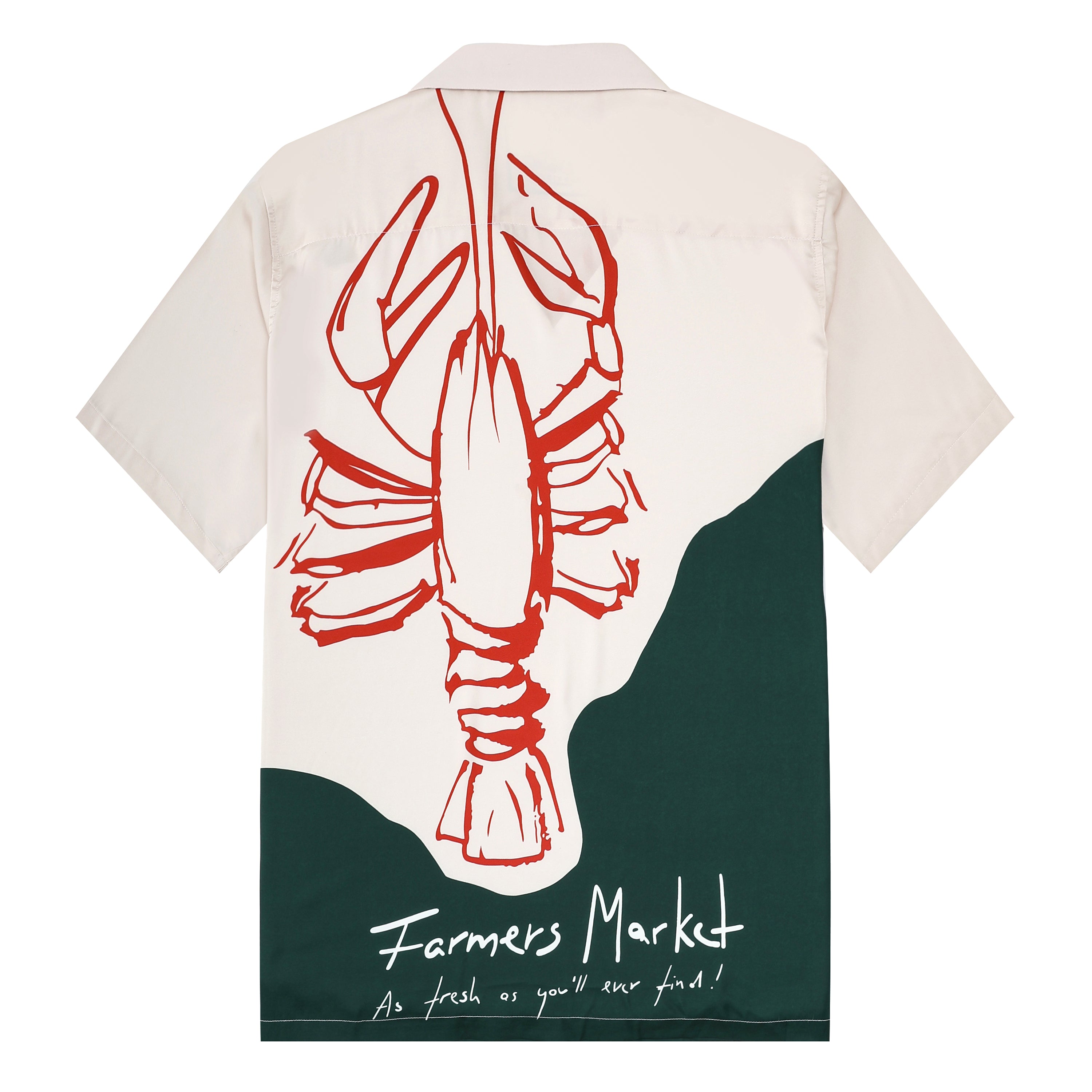 Forest Green Lobsters Pattern Short Sleeve Camp Collar Shirt