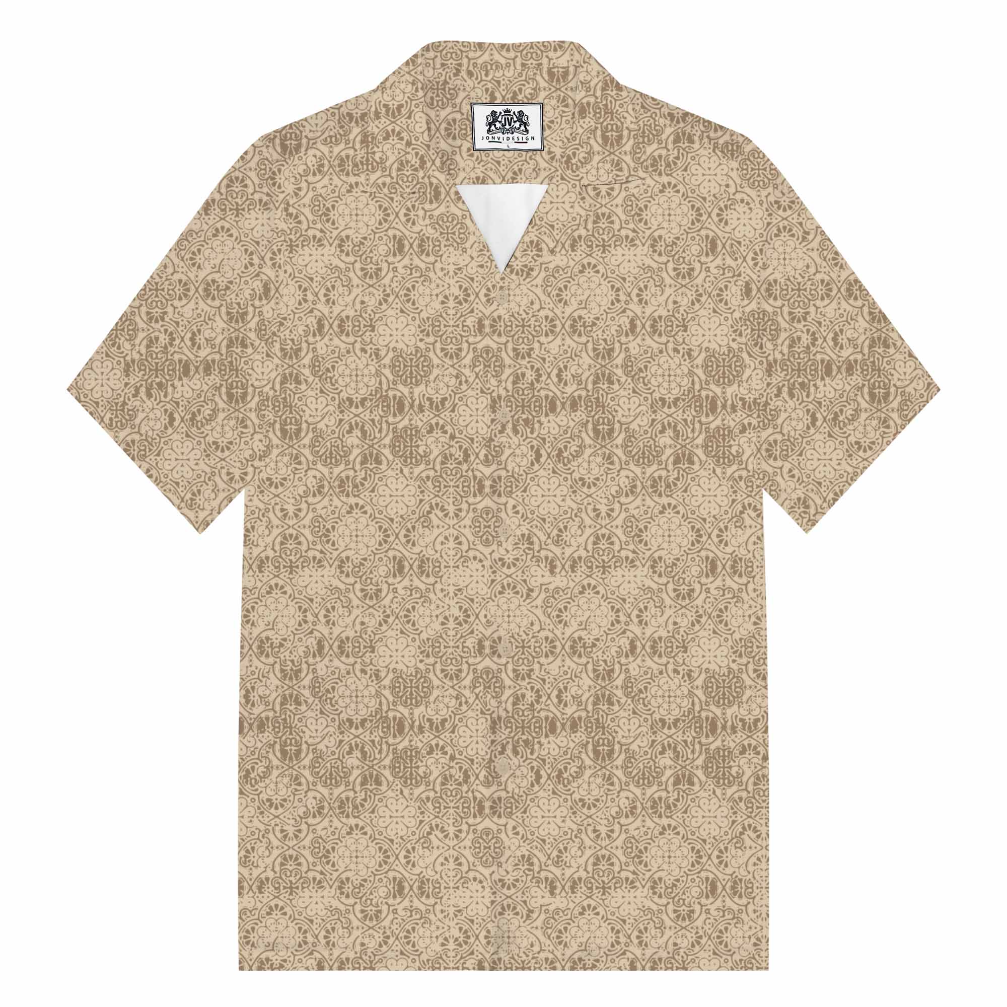 Four-Leaf Clover Print Casual Camp Collar Short-Sleeved Shirt