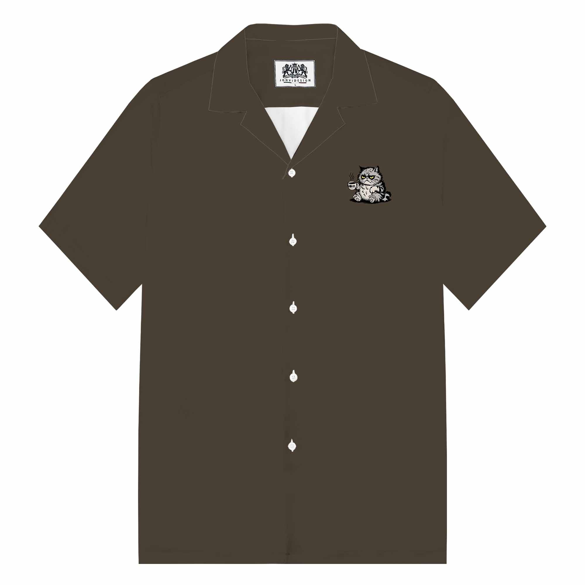 Funny Cat And Coffee Im Here Im Awake Print Camp Collar Short-Sleeved Shirt