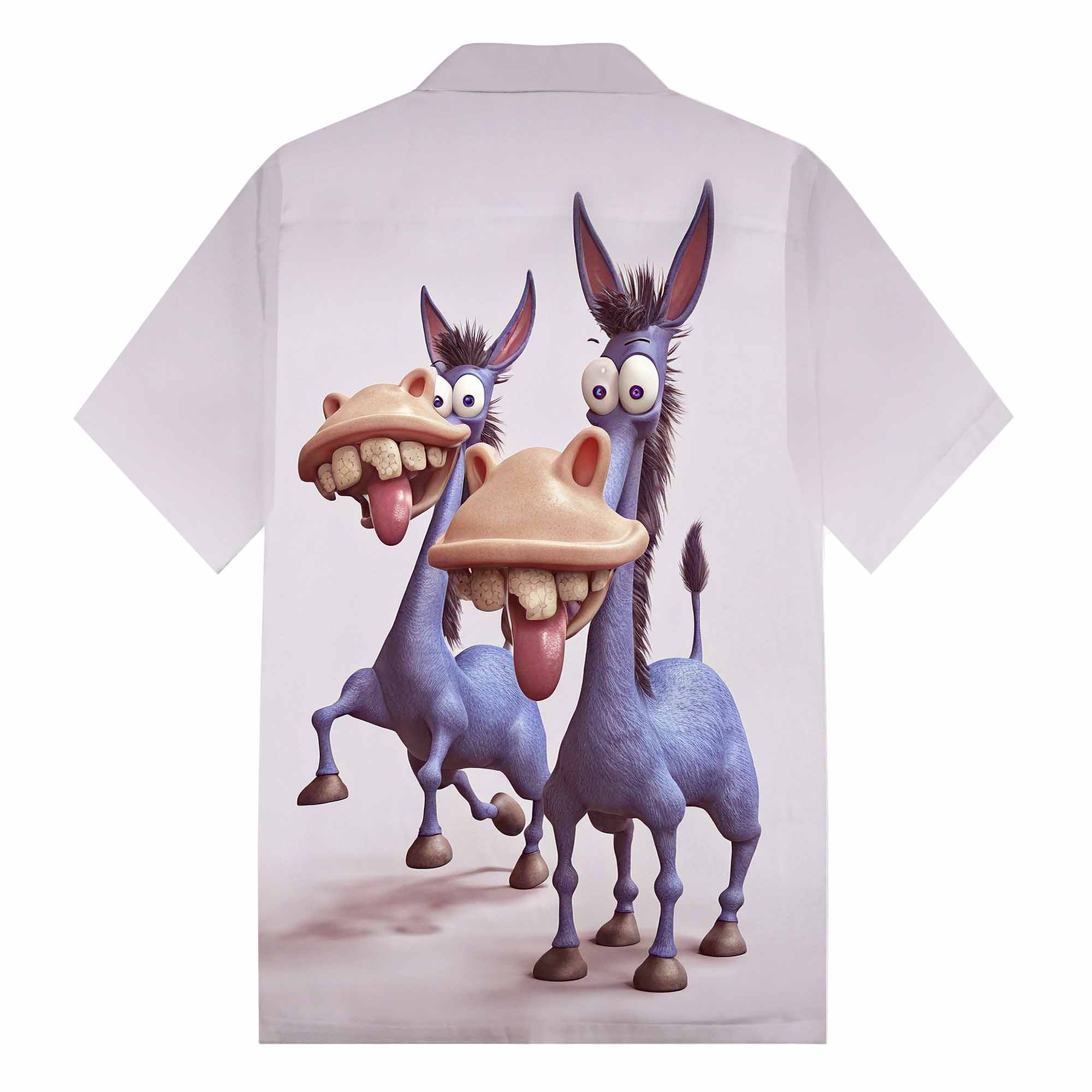 Funny Donkey Print Camp Collar Short Sleeve Shirt