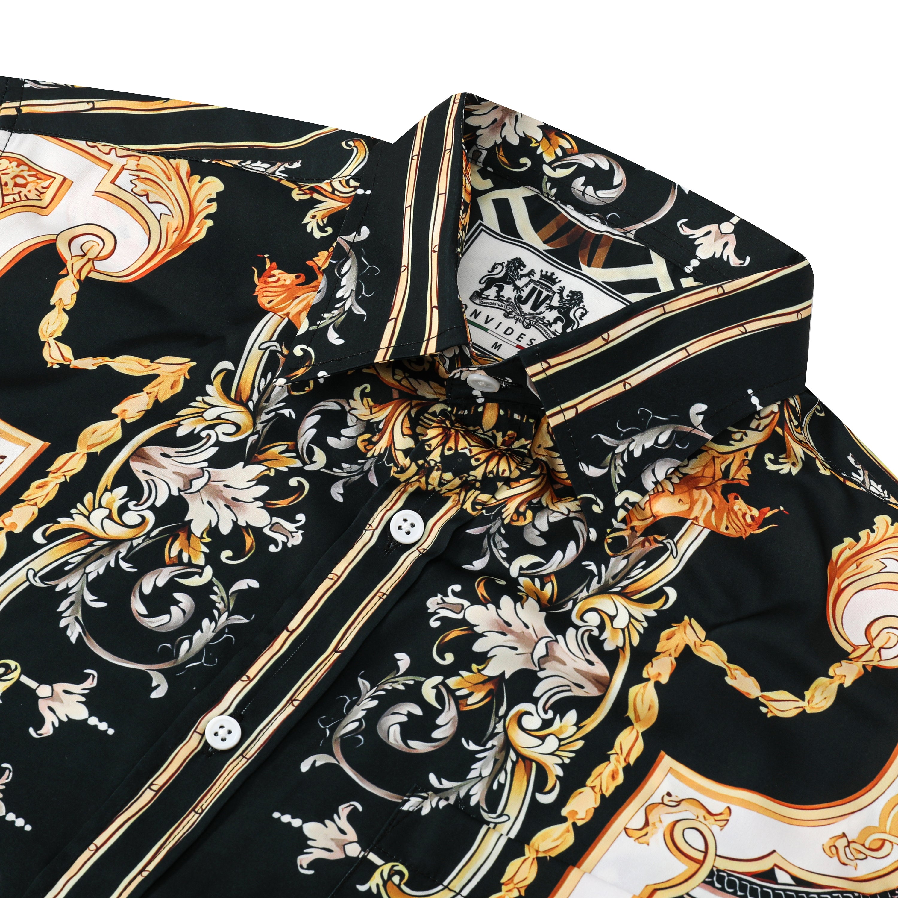 Golden Baroque Silk Fiber Short Sleeve Shirt
