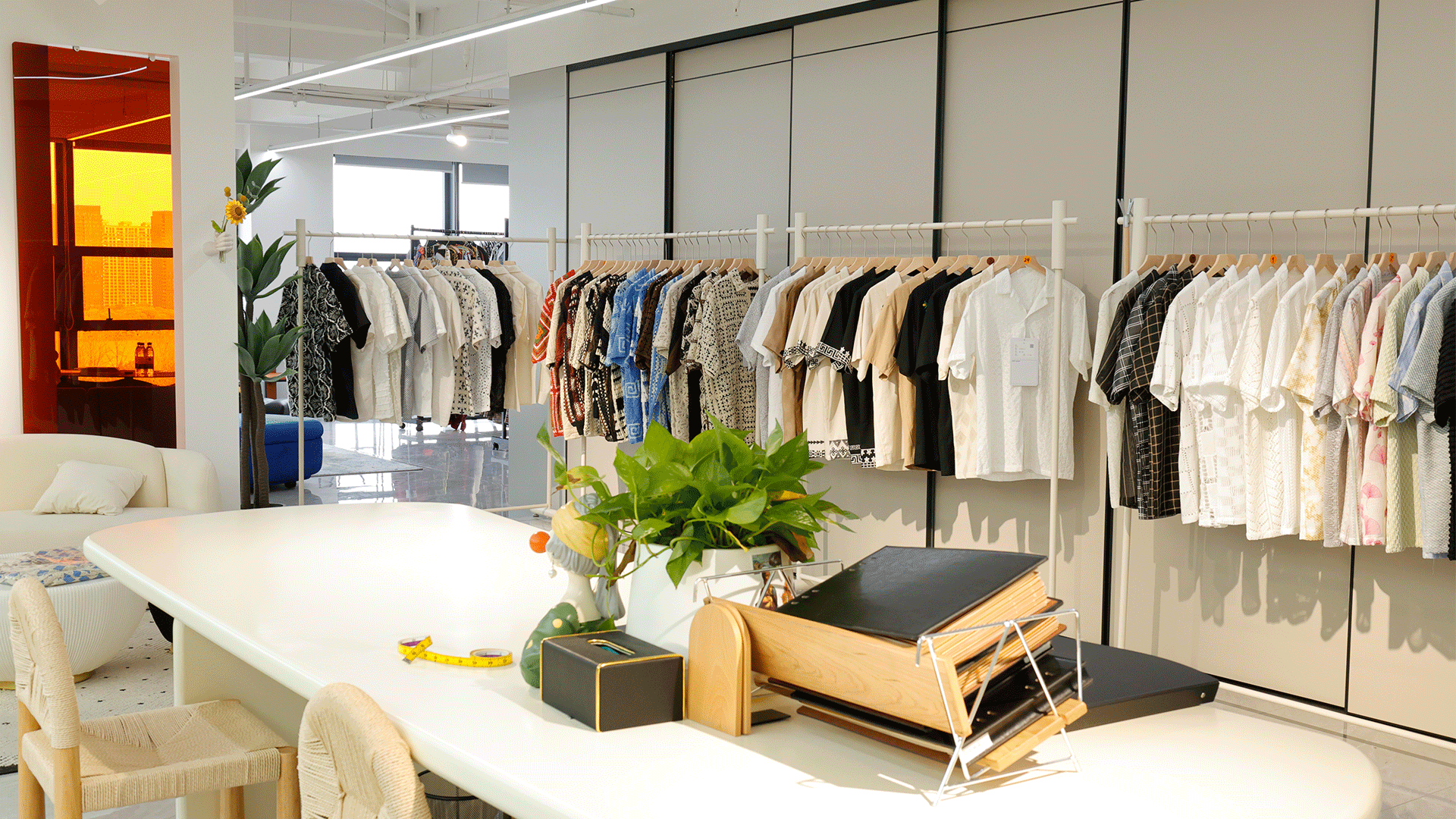 We have a shirt sample showroom and office workspace where we develop and display new styles.