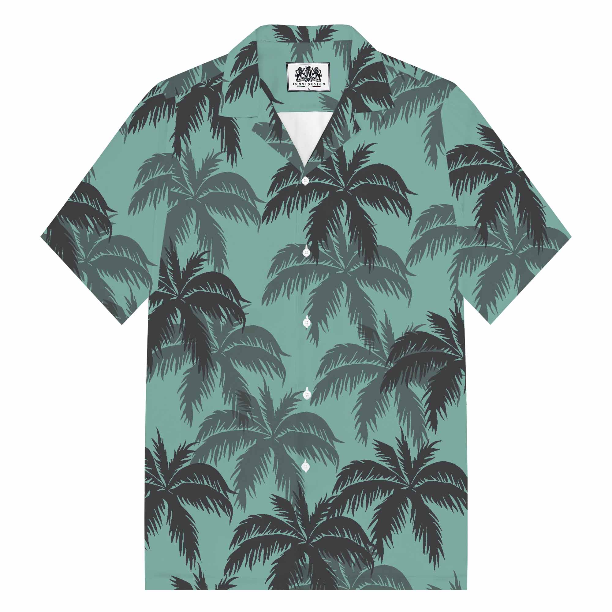Green Hawaiian Leaf Pattern Camp Collar Short Sleeve Shirt