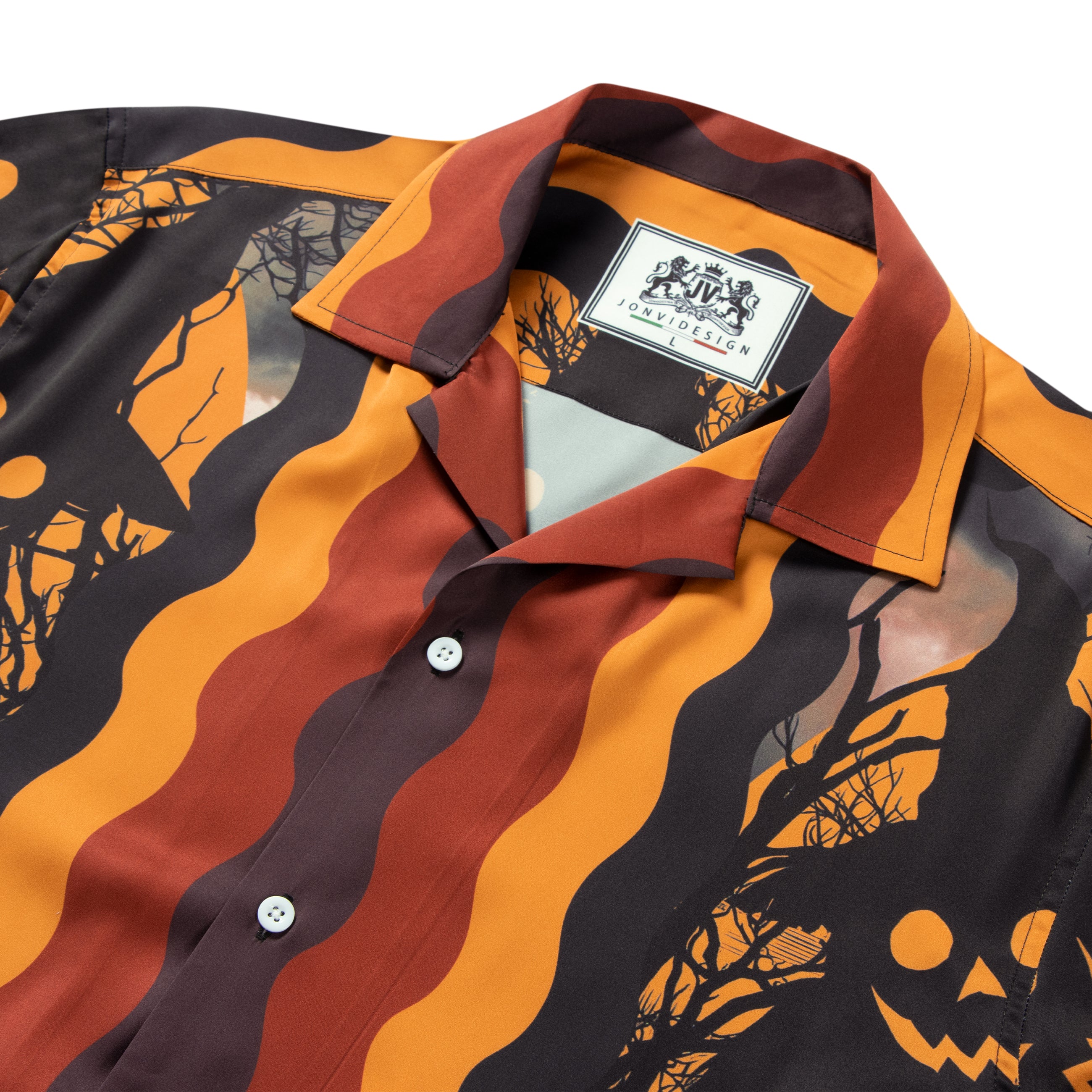 Halloween Horror Ghost And Pumpkin Witches Long Sleeve Camp Collar Shirt