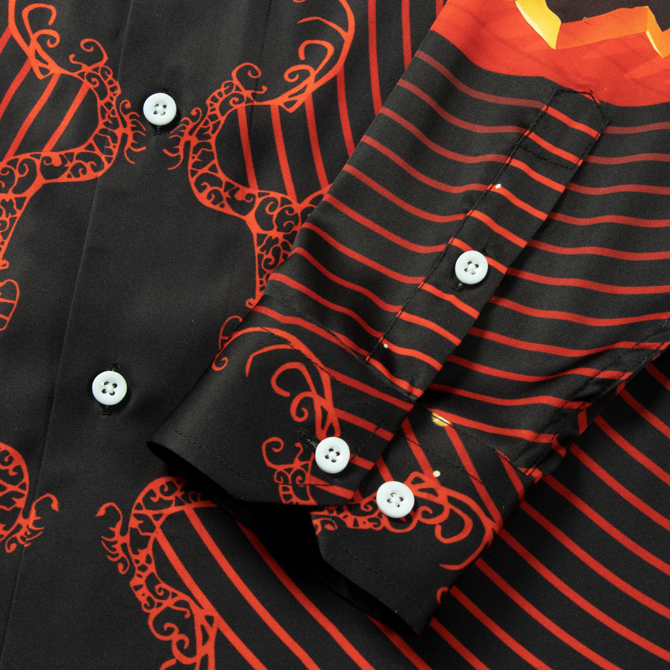 Halloween Pumpkin Long Sleeve Camp Collar Shirt