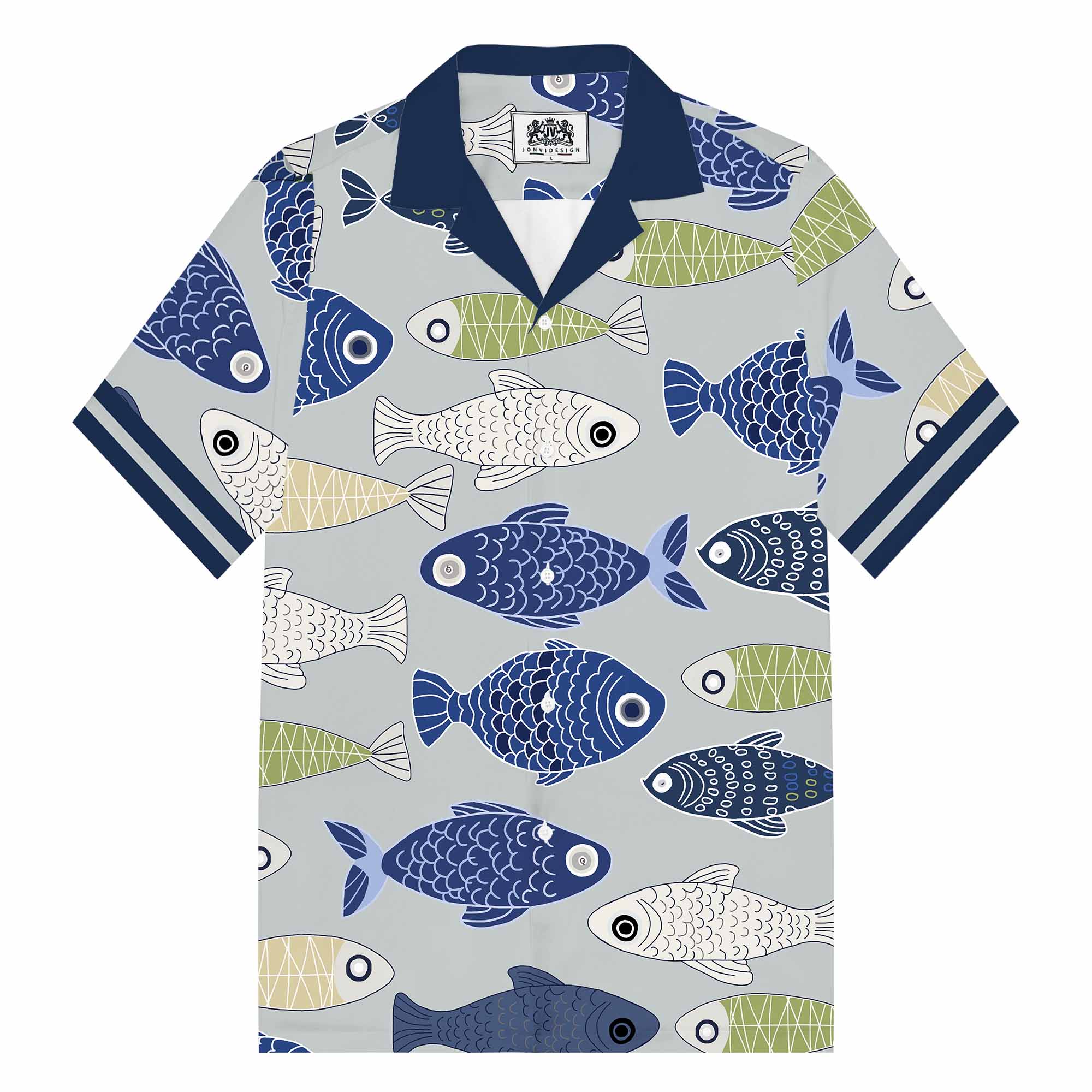 Hawaiian Fish Pattern Camp Collar Short Sleeve Shirt