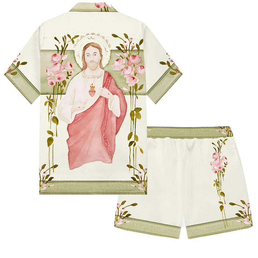 Jesus Portrait Print Elastic Waistband Summer Casual Shorts