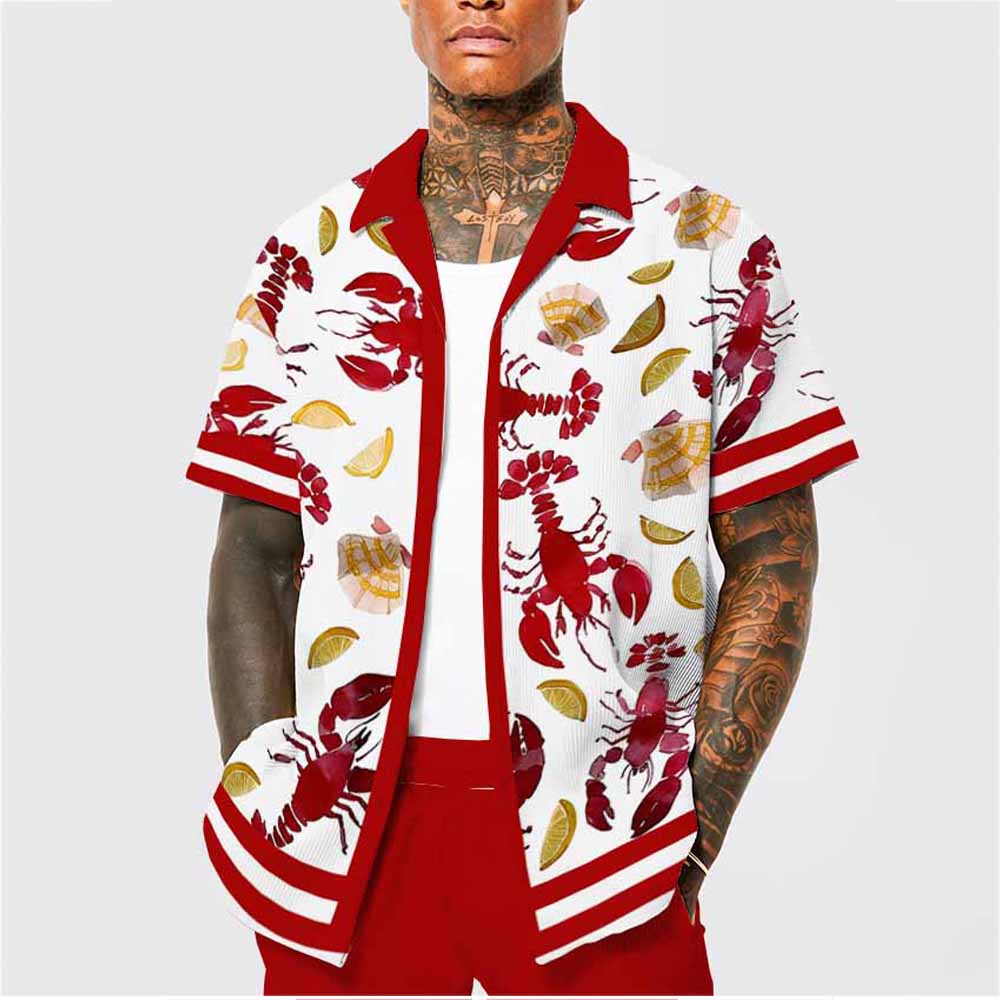 Lemon Slice Crayfish Pattern Elastic Waistband Summer Casual Shorts