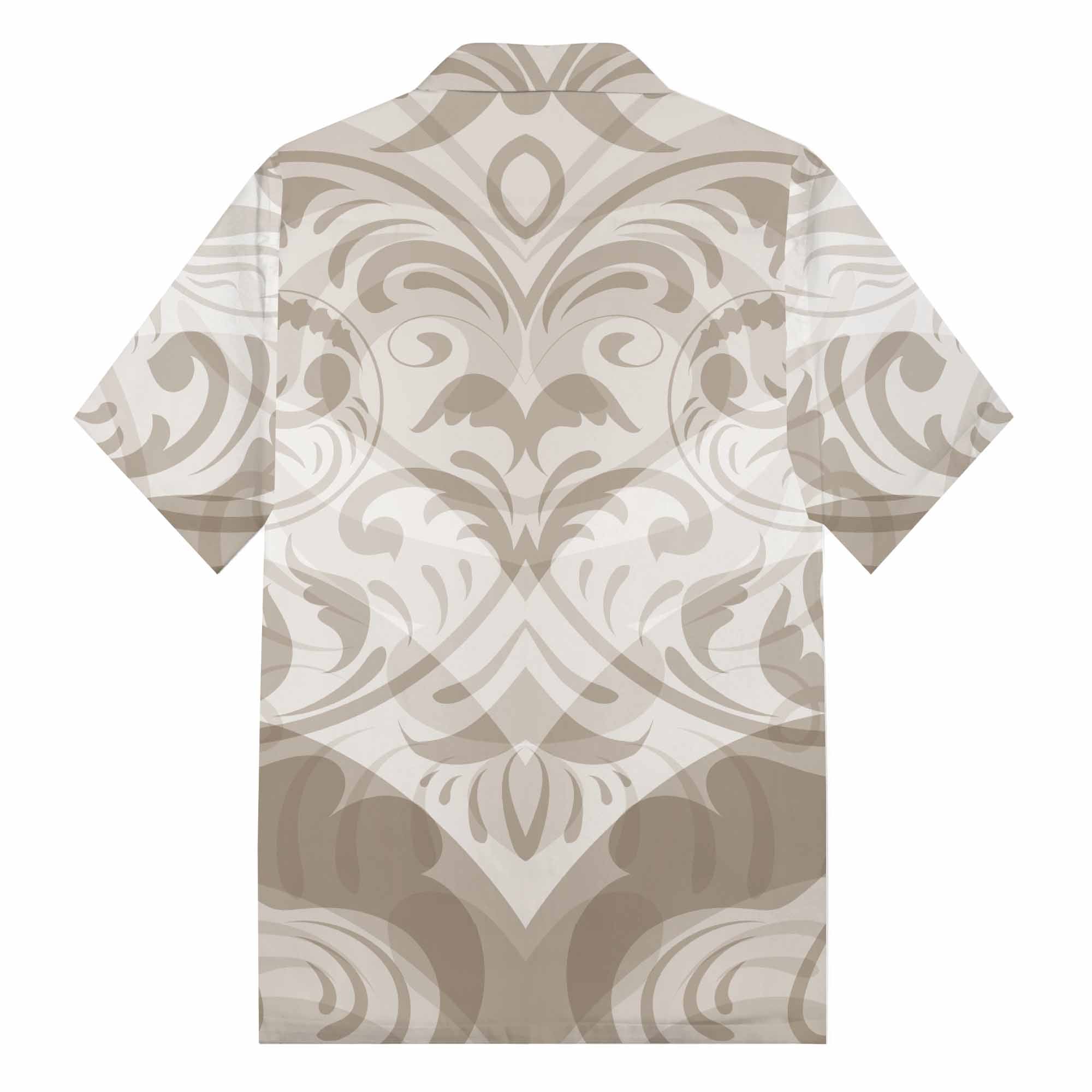 Light Brown On White Polynesian Camp Collar Short Sleeve Shirt