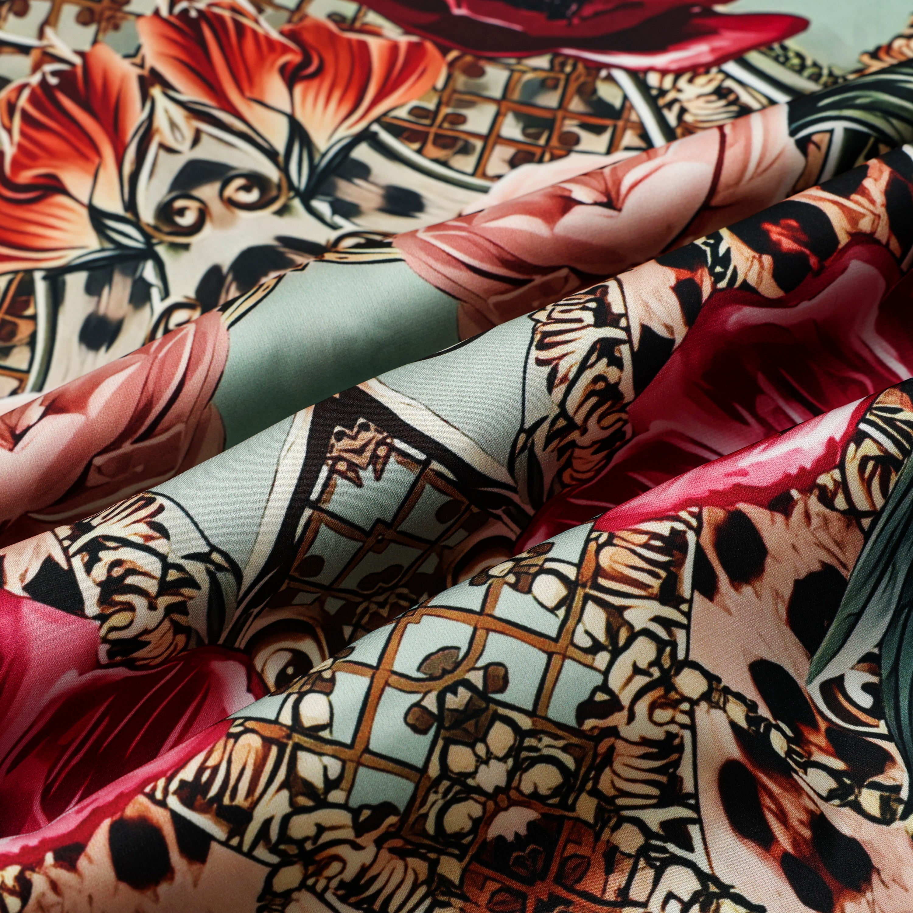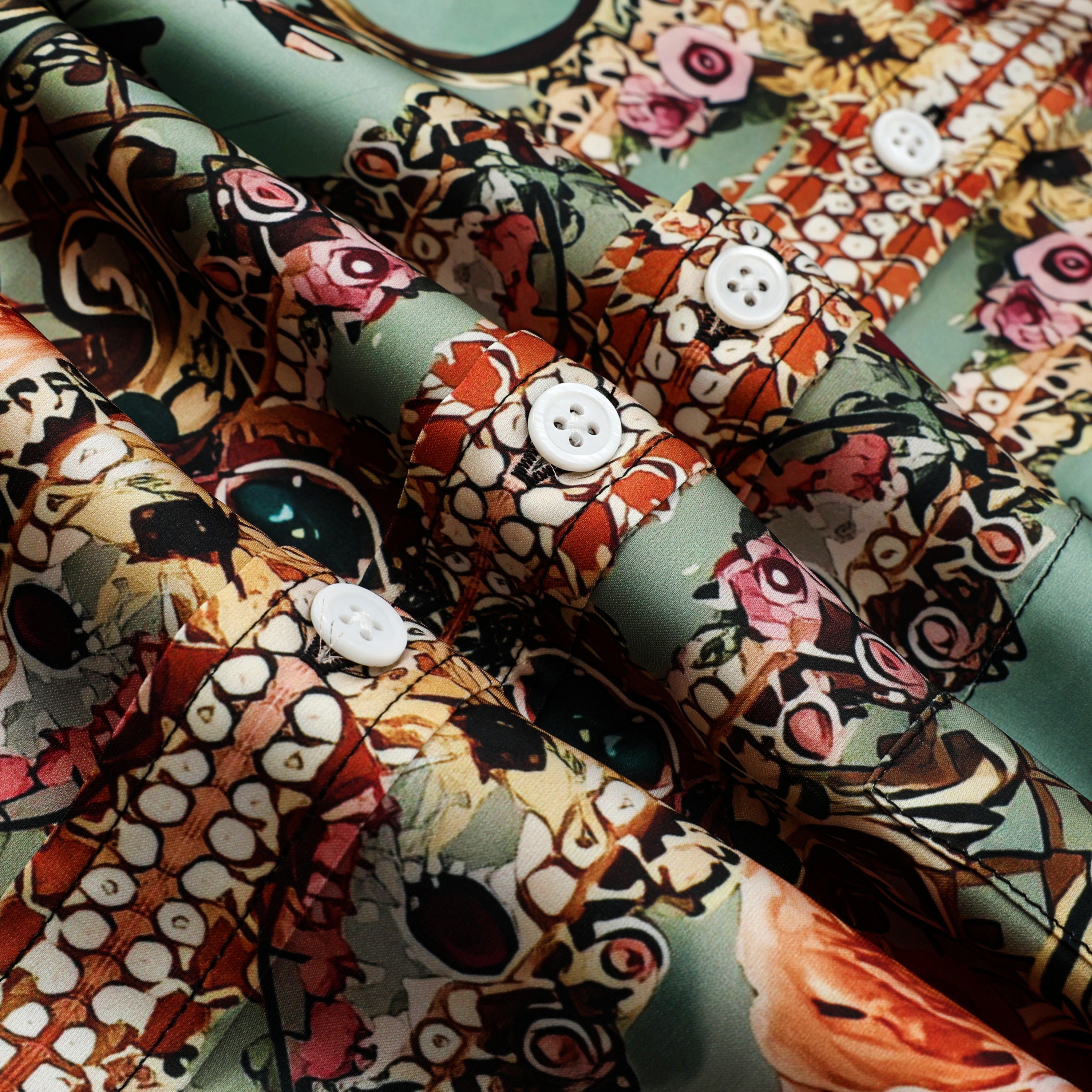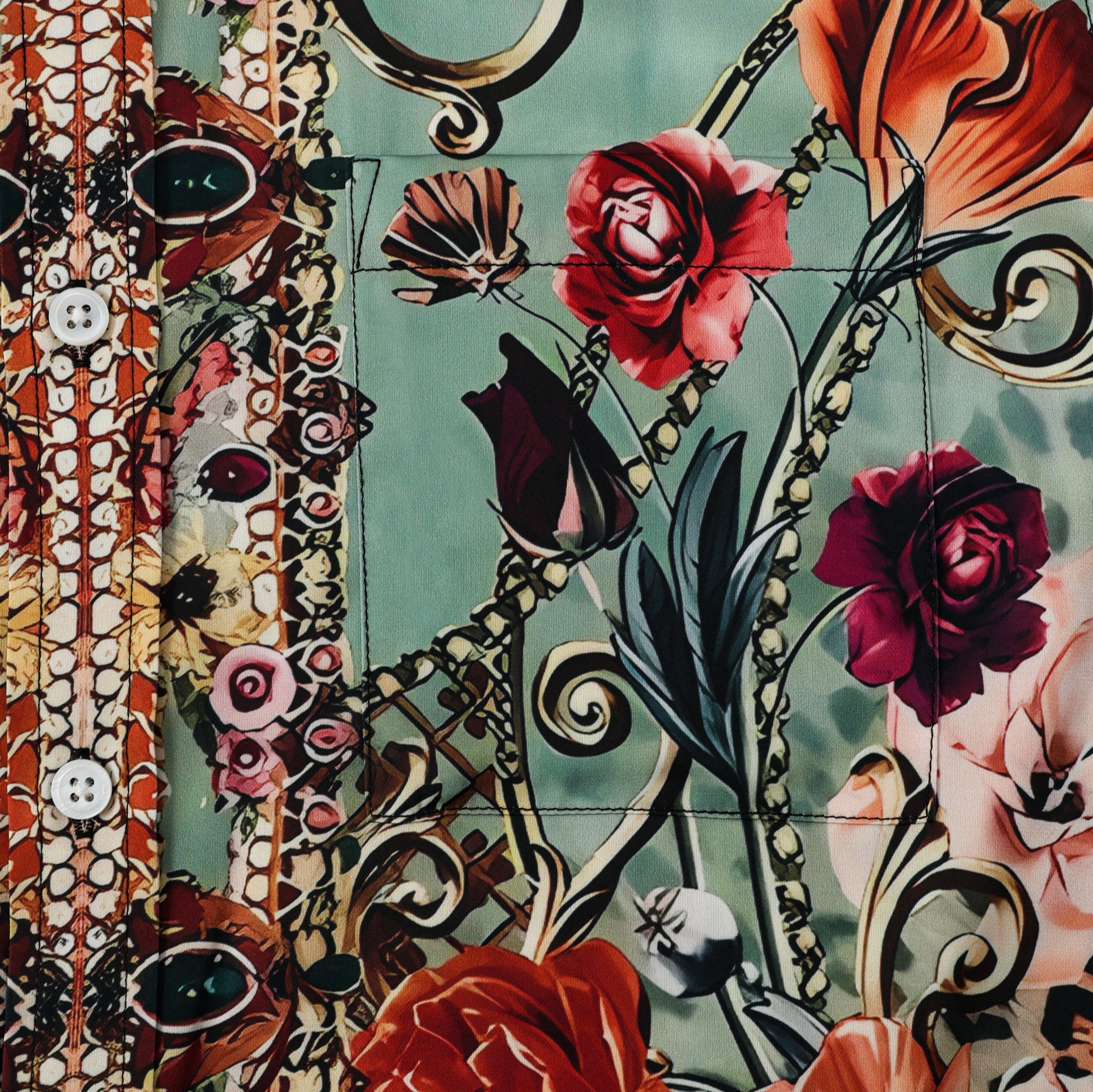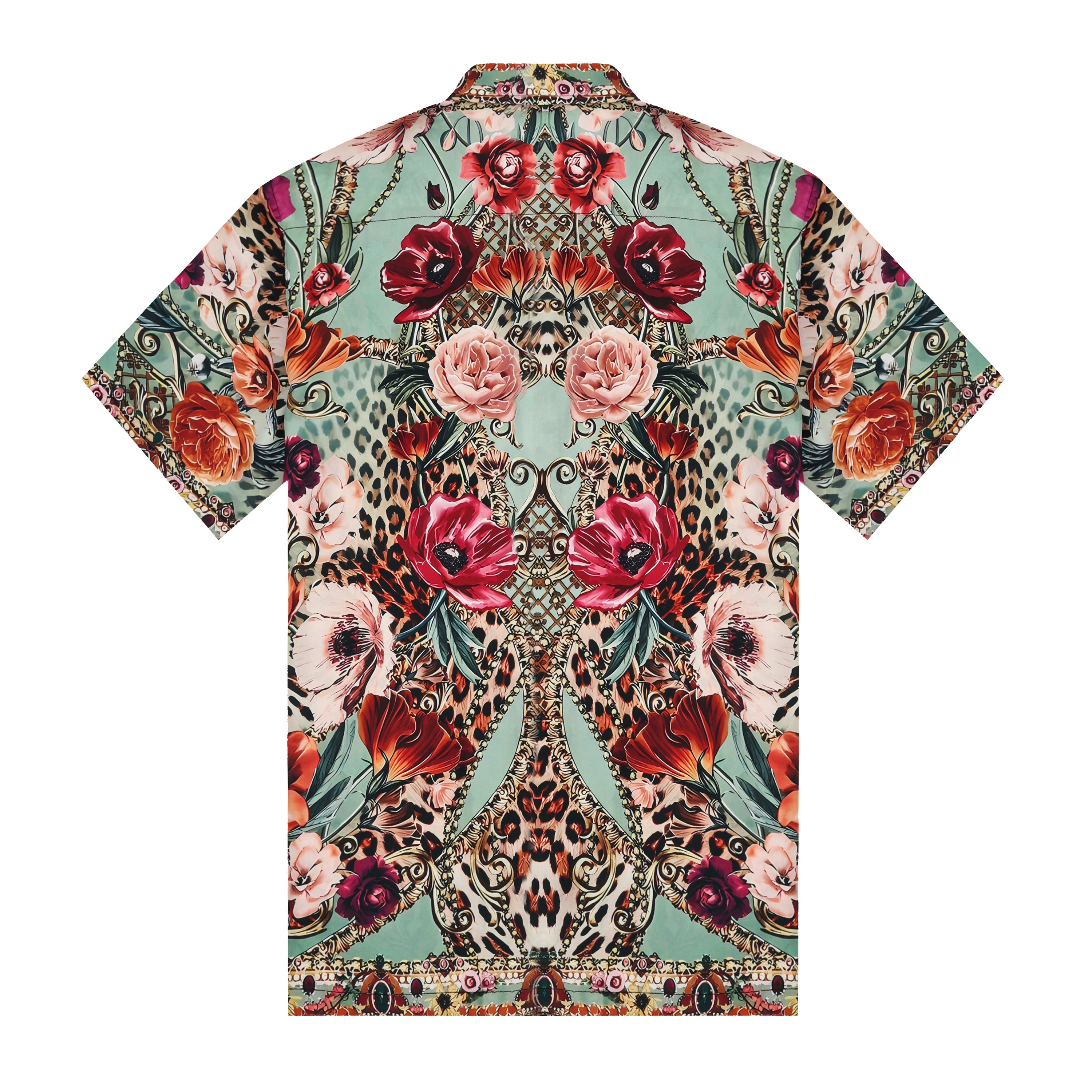 Luxury Animal Flower Print Silk Fiber Short Sleeve Shirt