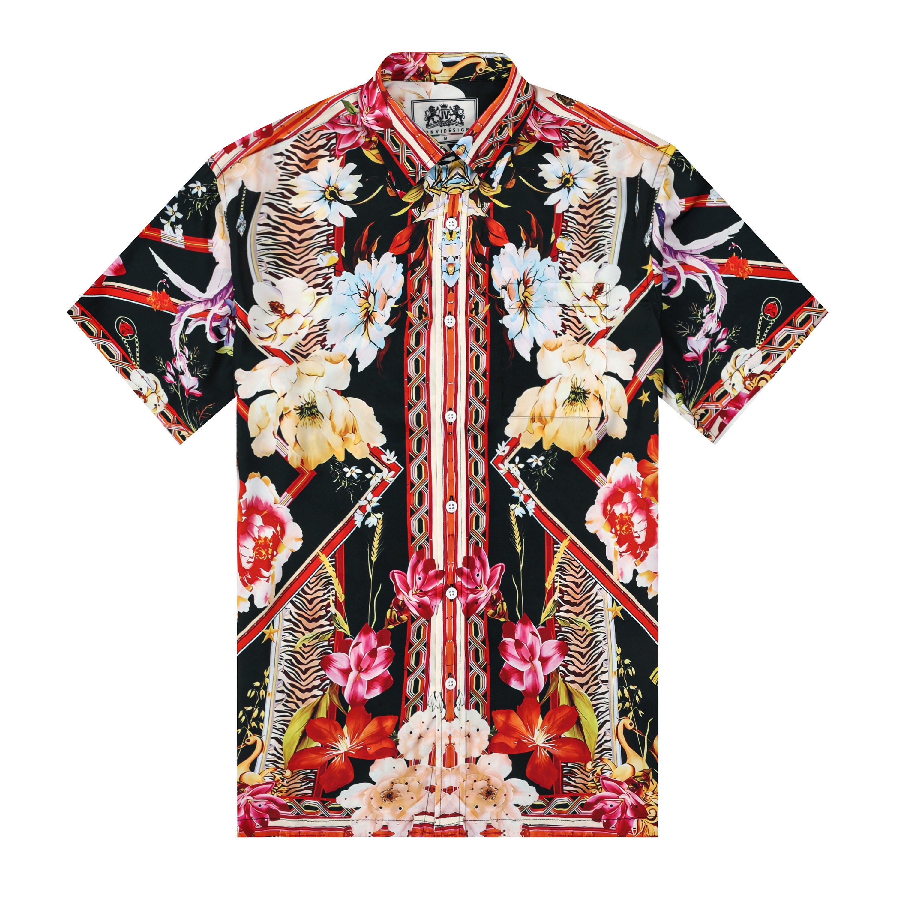 Luxury Flower Print Silk Fiber Short Sleeve Shirt