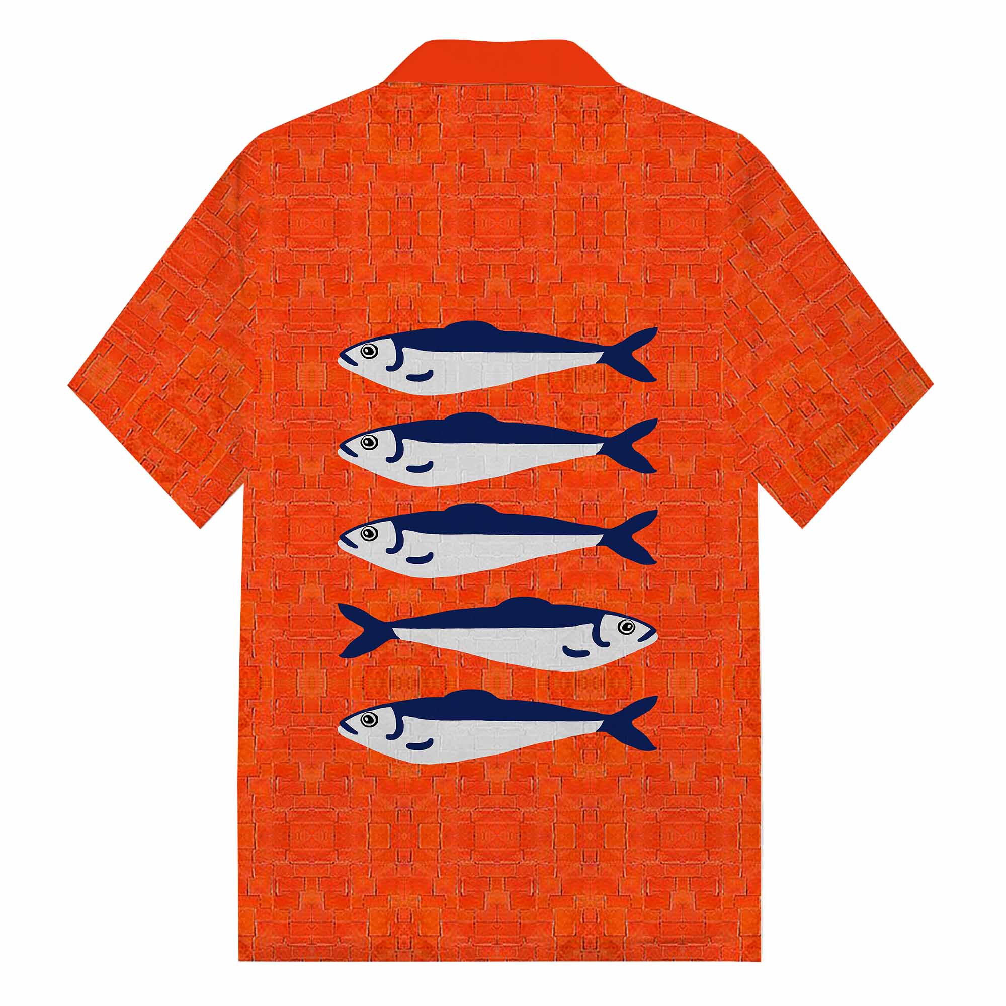 Ocean Theme Sardine Pattern Camp Collar Short Sleeve Shirt