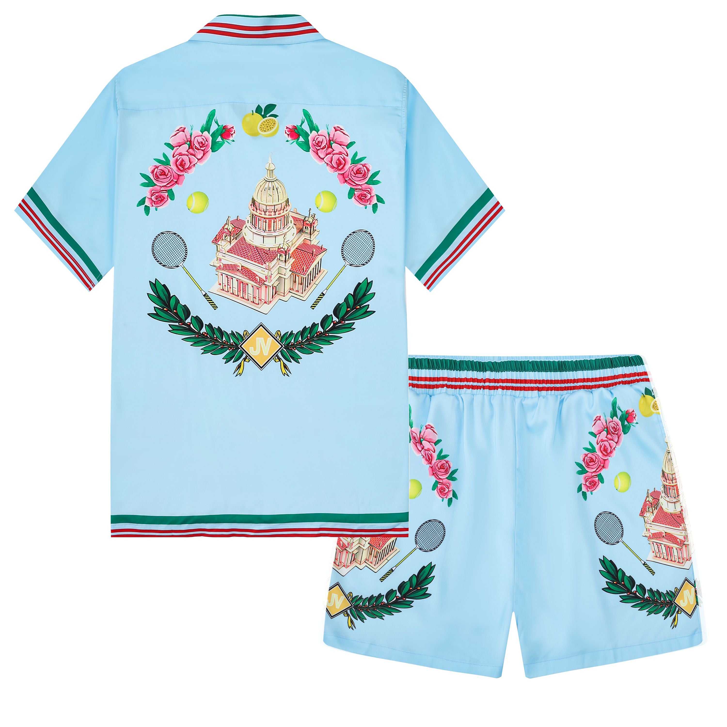 Palace Pattern Elastic Waist Summer Casual Shorts