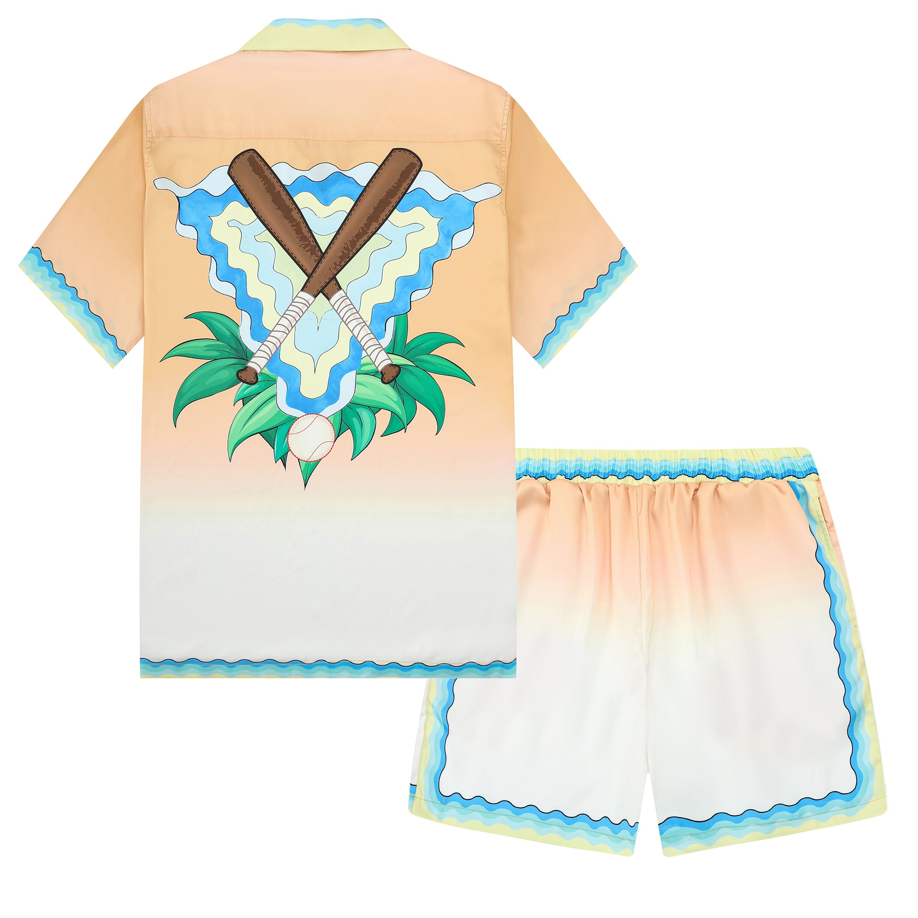 Pingpong Wave Pattern Camp Collar Casual Shirt