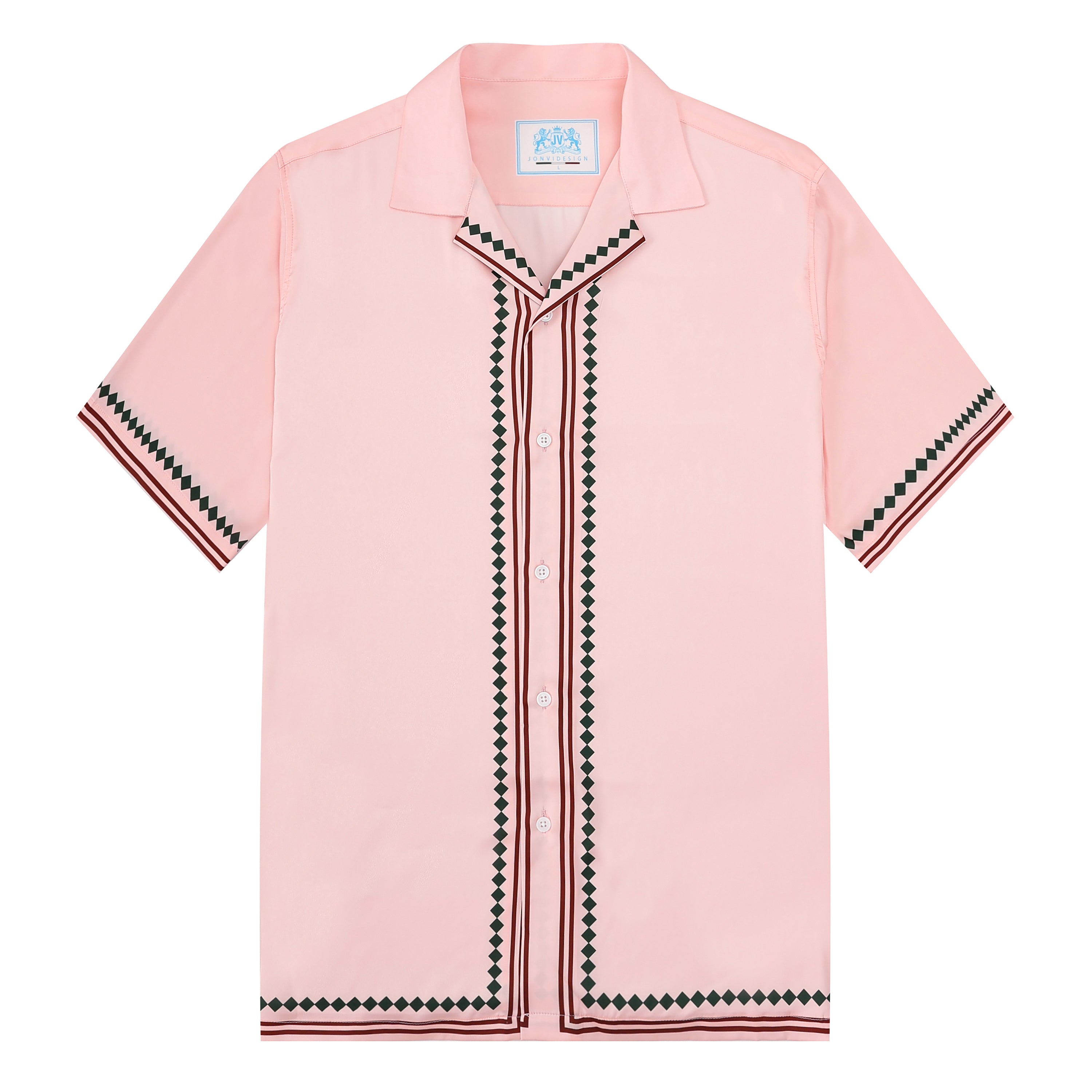 Pink Camp Collar Short Sleeve Tennis Shirt