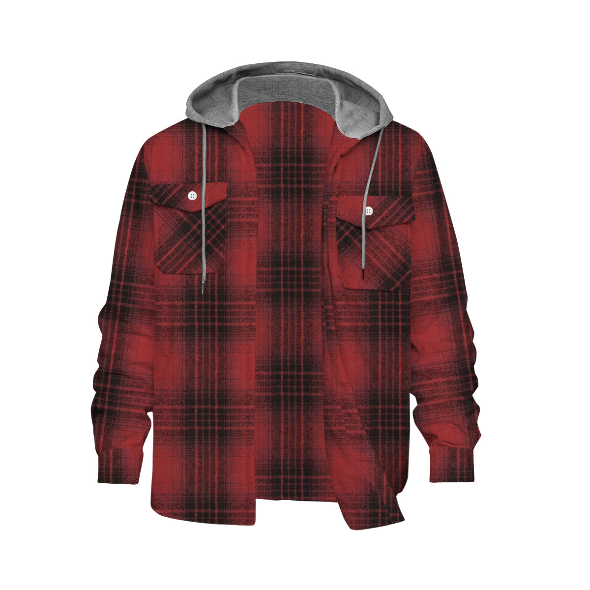 Red Large Plaid Long Sleeve Hooded Shirt
