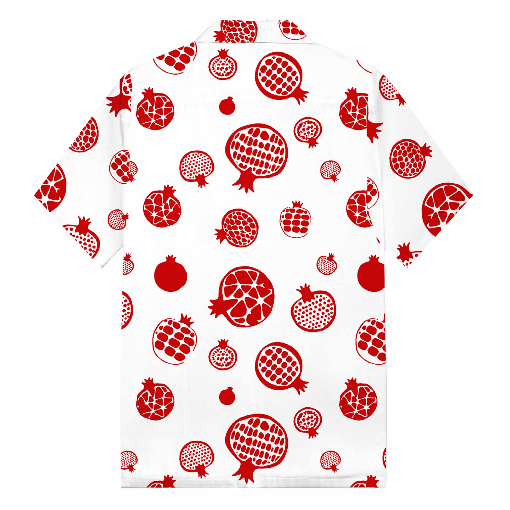 Red Pomegranate Print Pattern Camp Collar Short Sleeve Shirt