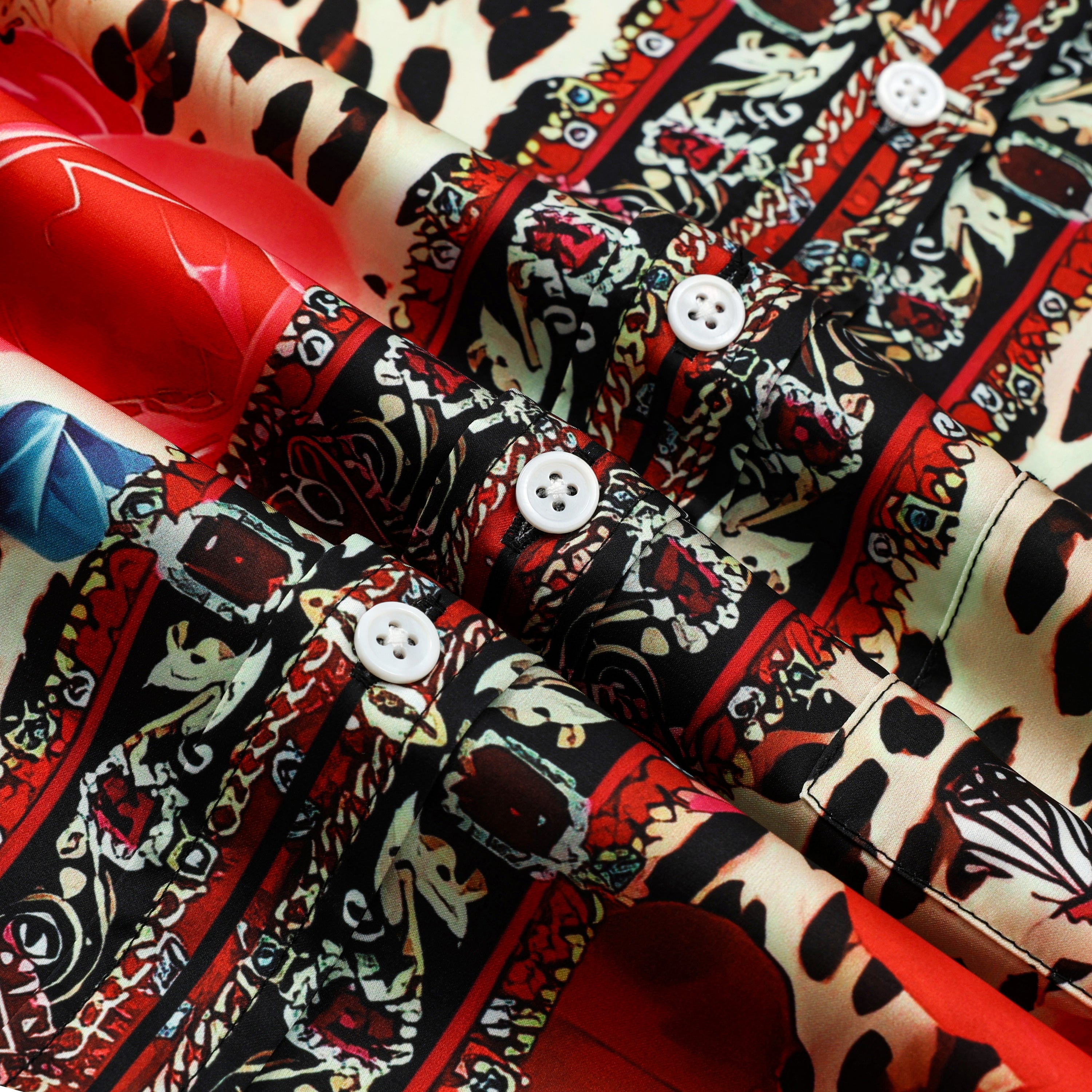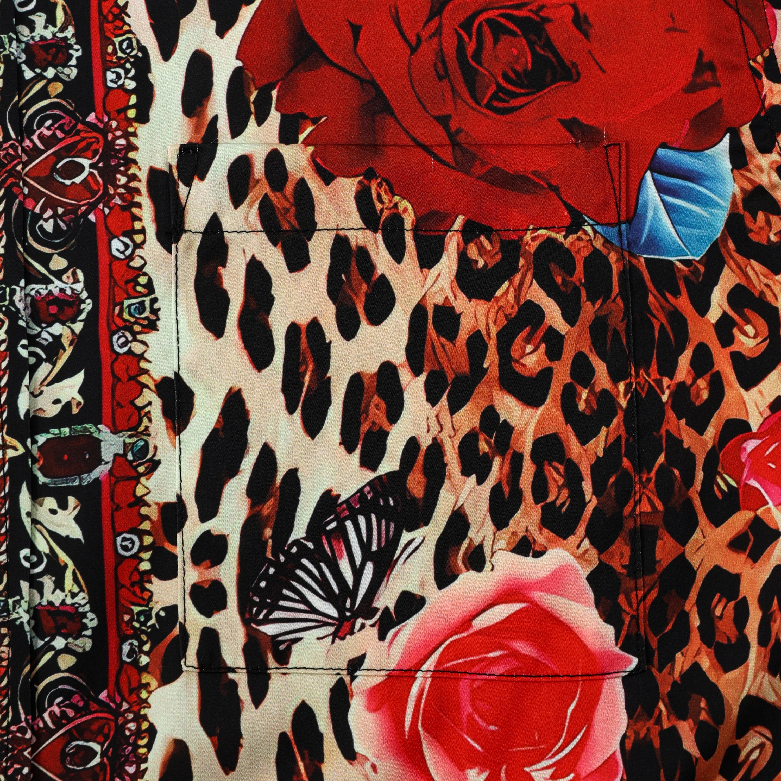 Red Rose Leopard Printed Silk Fiber Short Sleeve Shirt