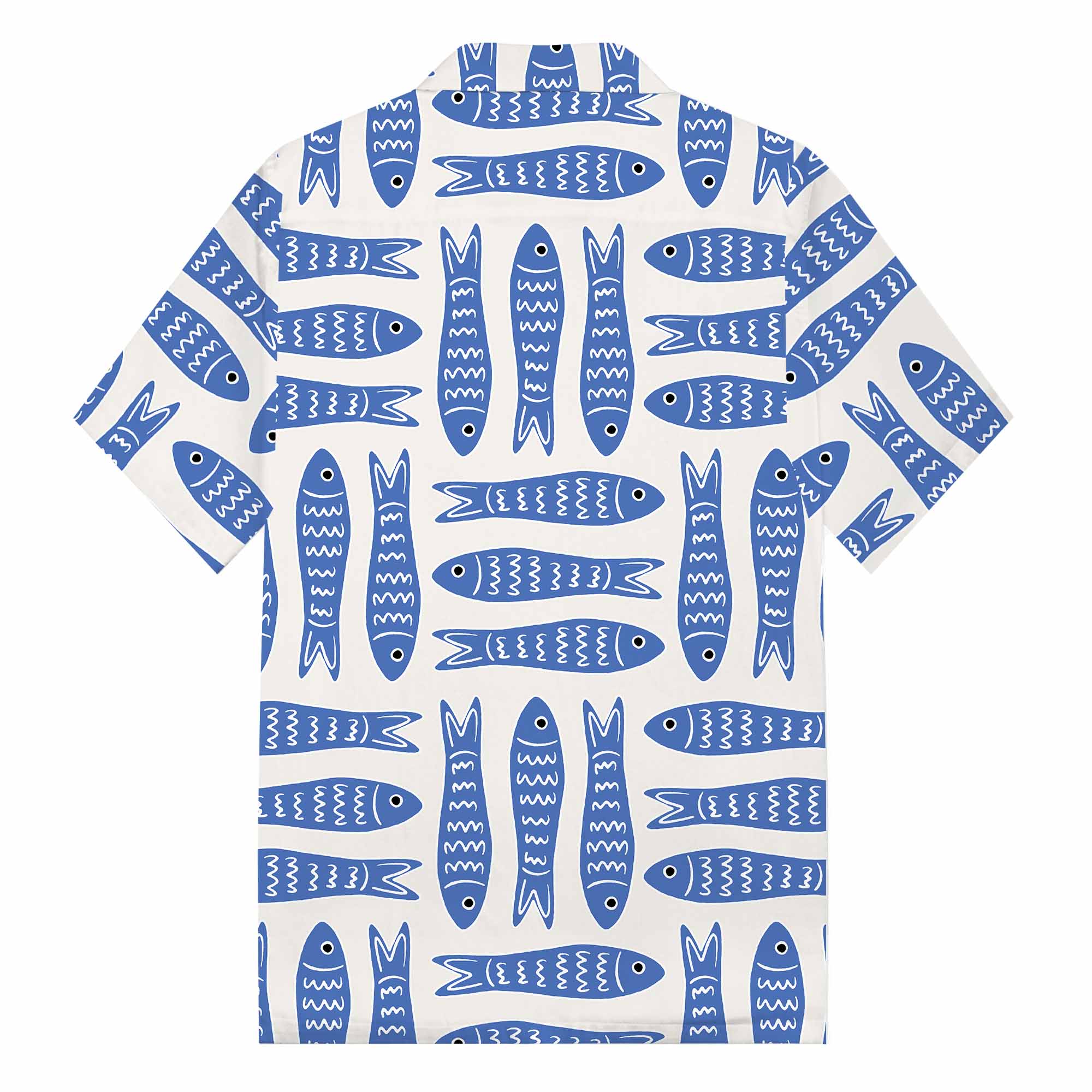 Summer Hawaiian Blue Fish Pattern Camp Collar Short Sleeve Shirt