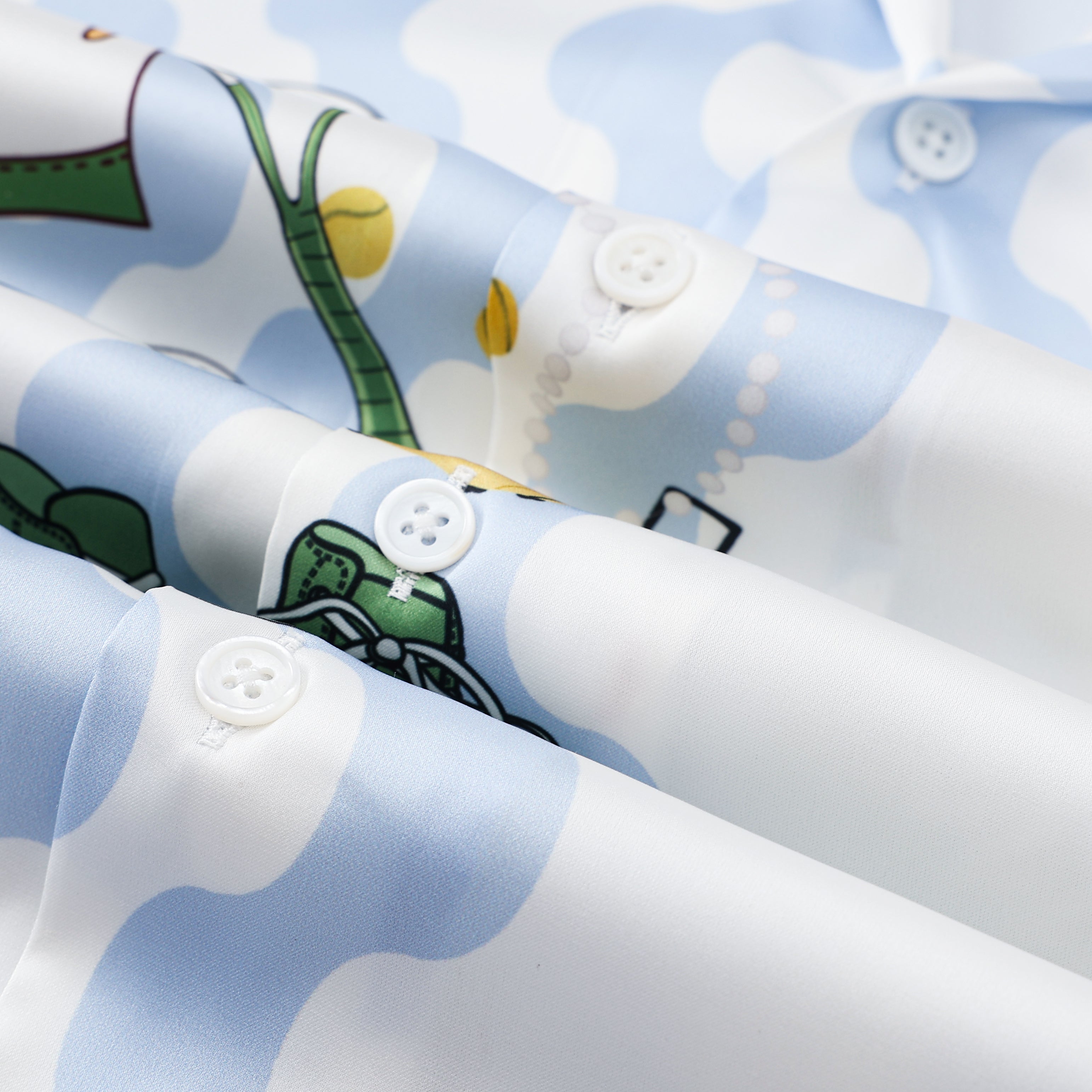 Tennis Element Print Short Sleeve Camp Collar Shirt