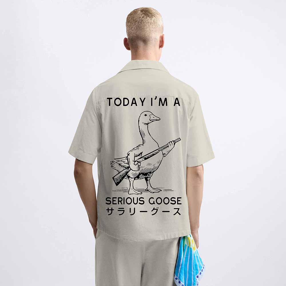 Today I'm A Serious Goose Print Elastic Band Casual Shorts
