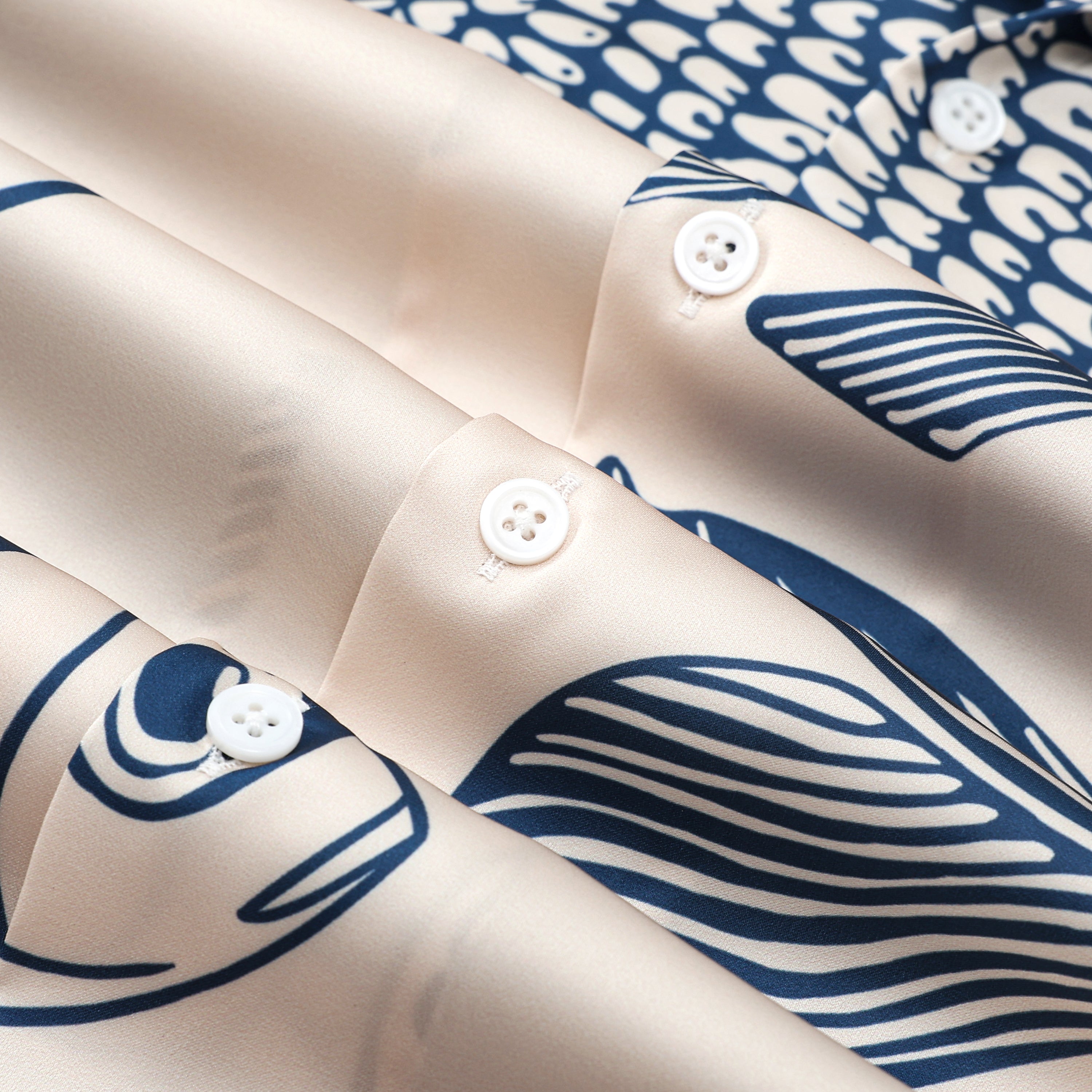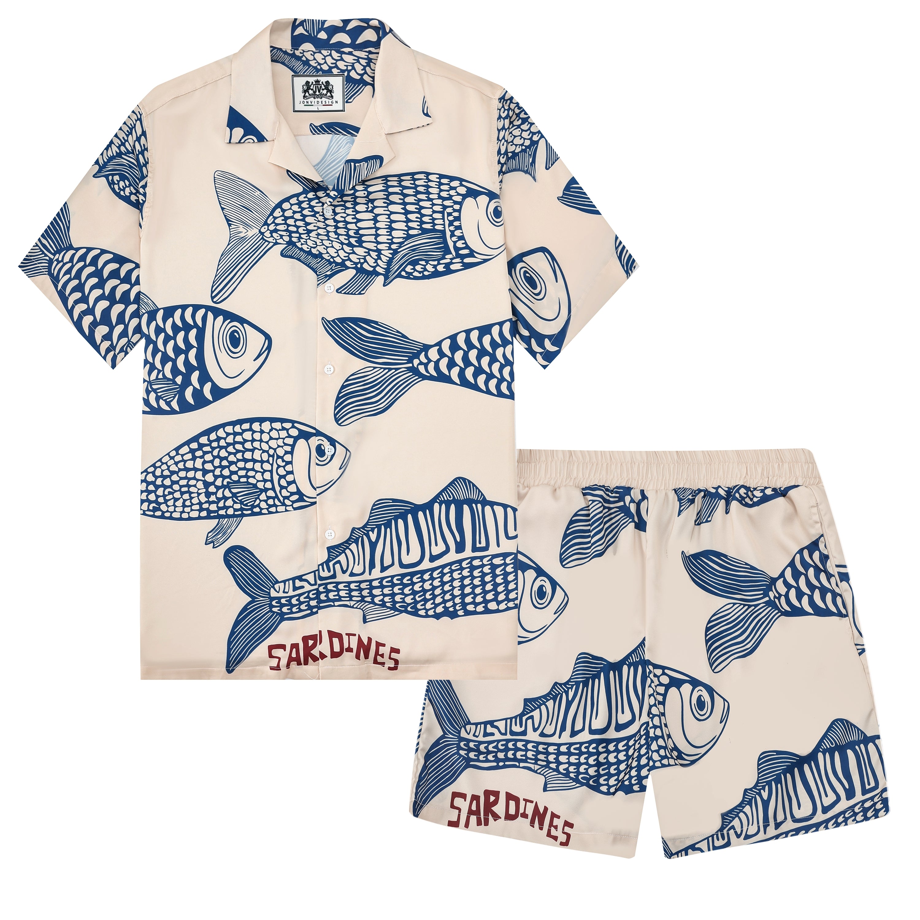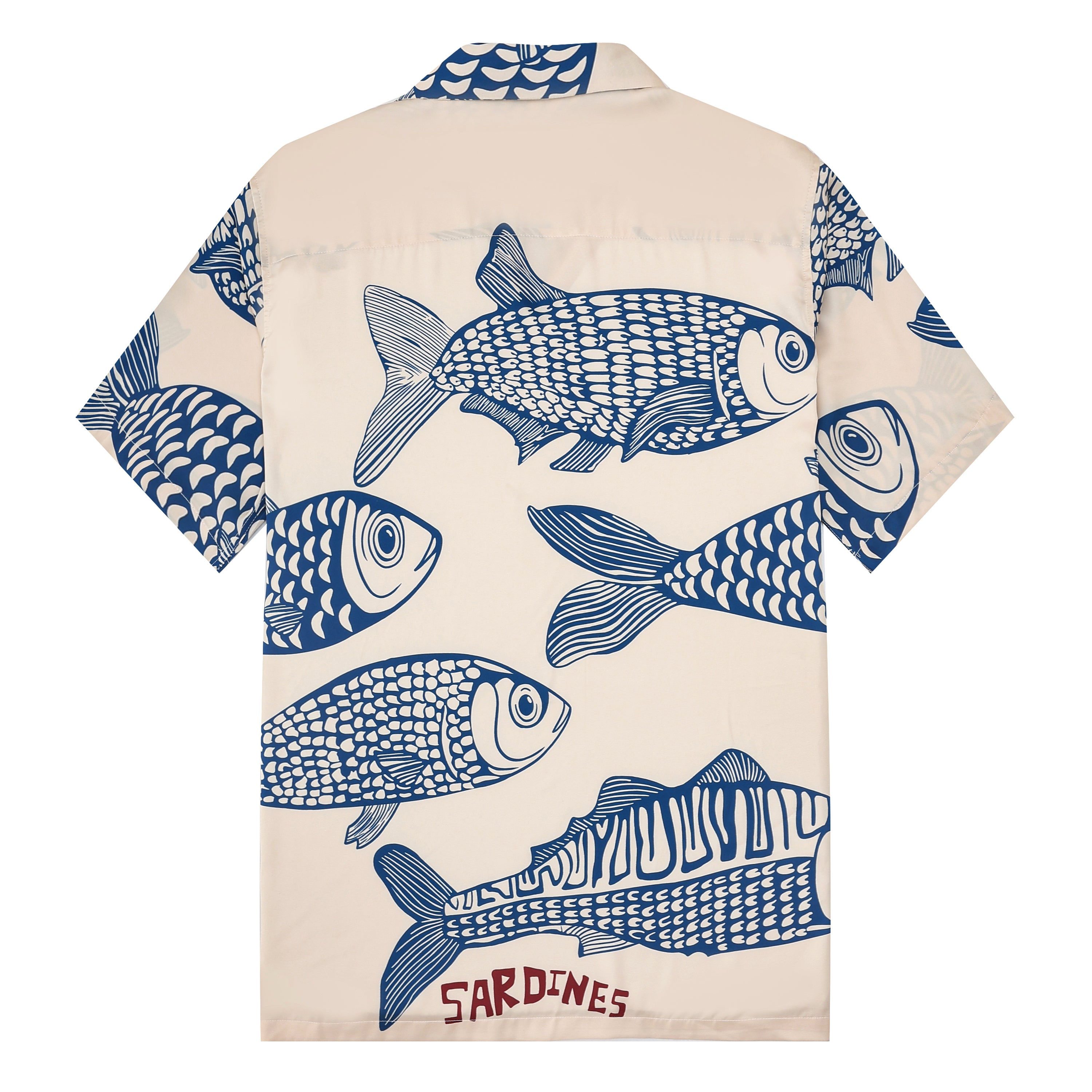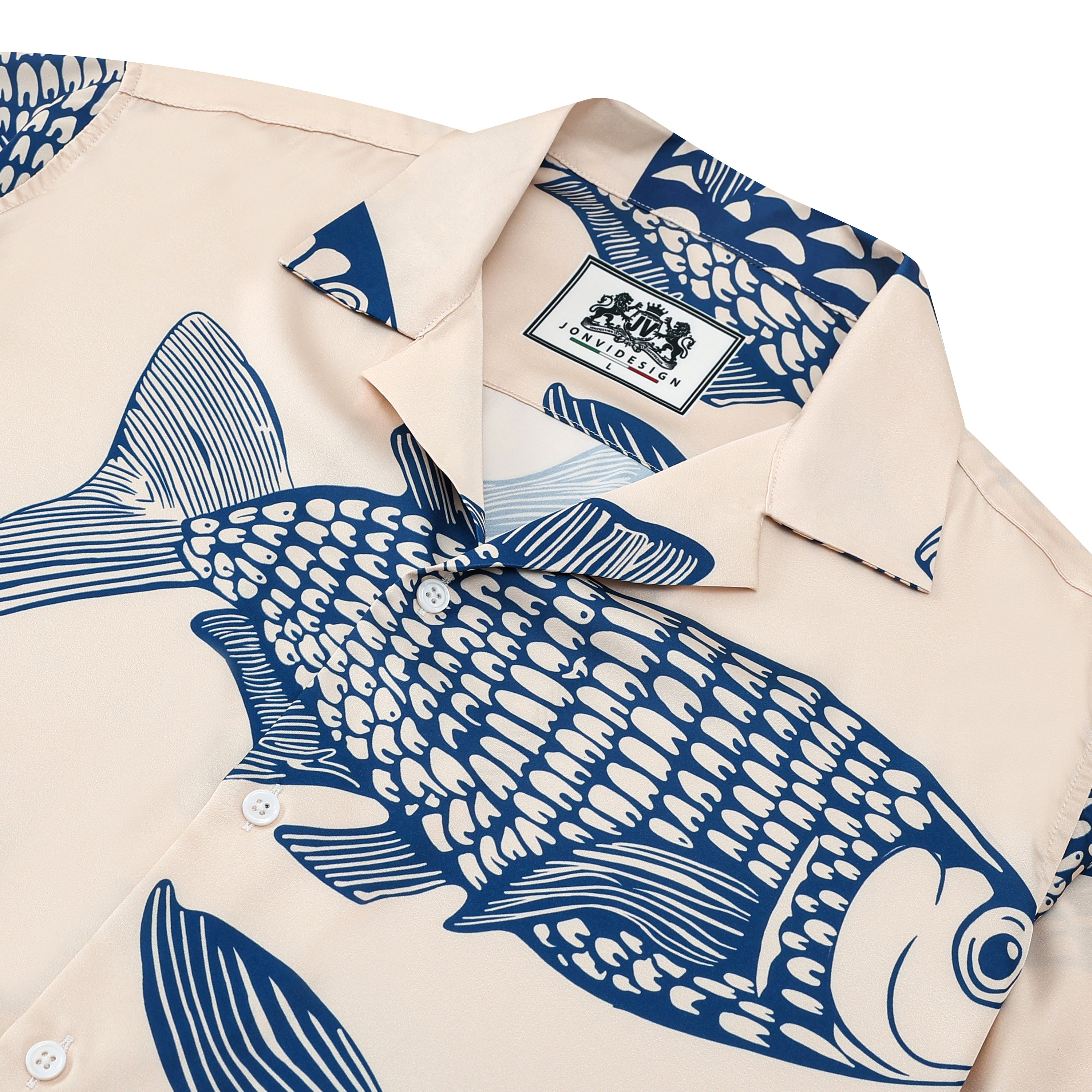 Vacation Wear Sardine Pattern Short Sleeve Camp Collar Shirt
