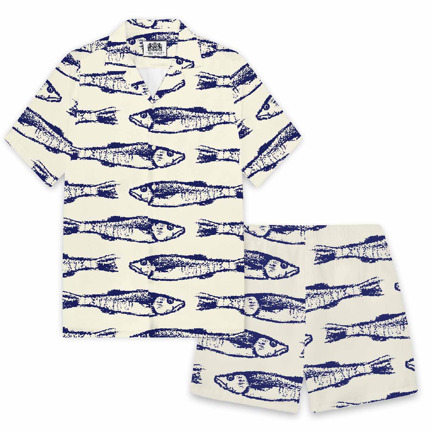 Vintage Fish Pattern Prints Elastic Waistband Summer Casual Shorts