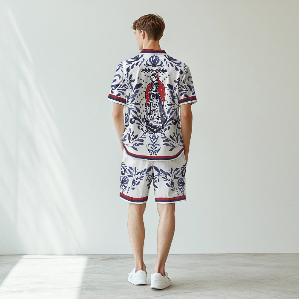 Virgin Mary Print Elastic Waistband Summer Casual Shorts